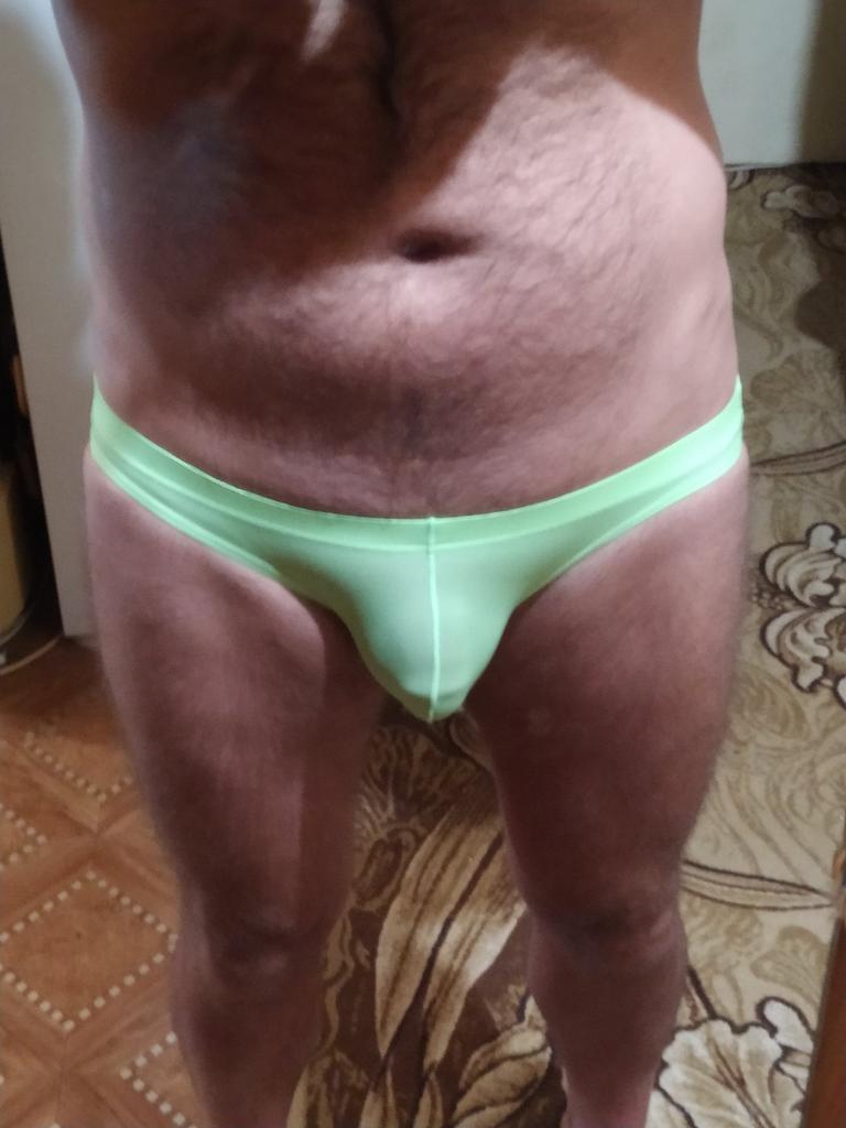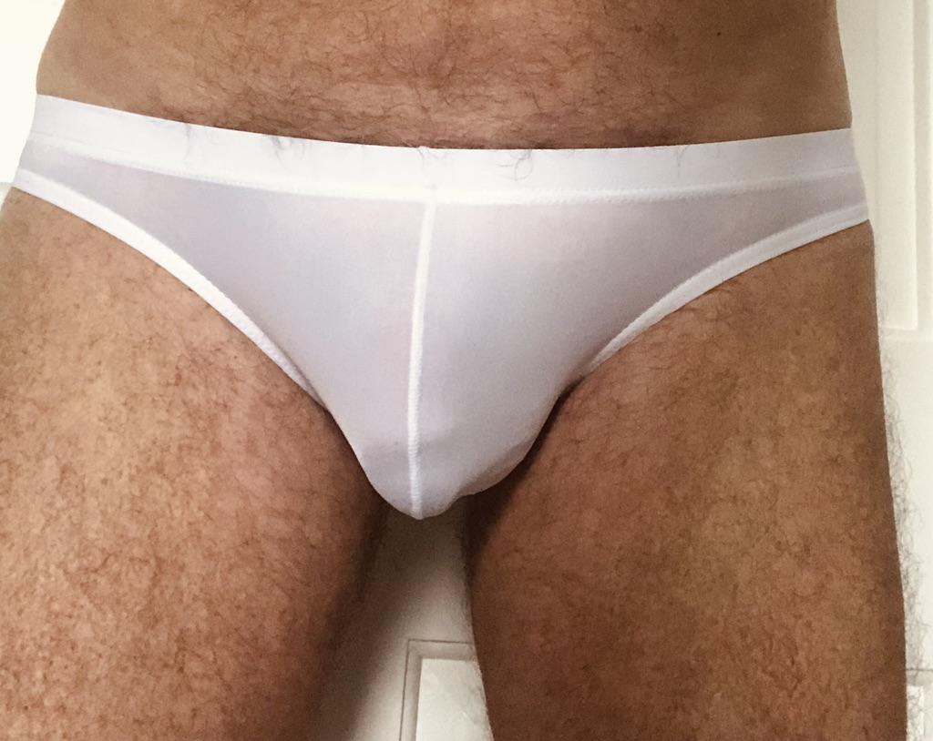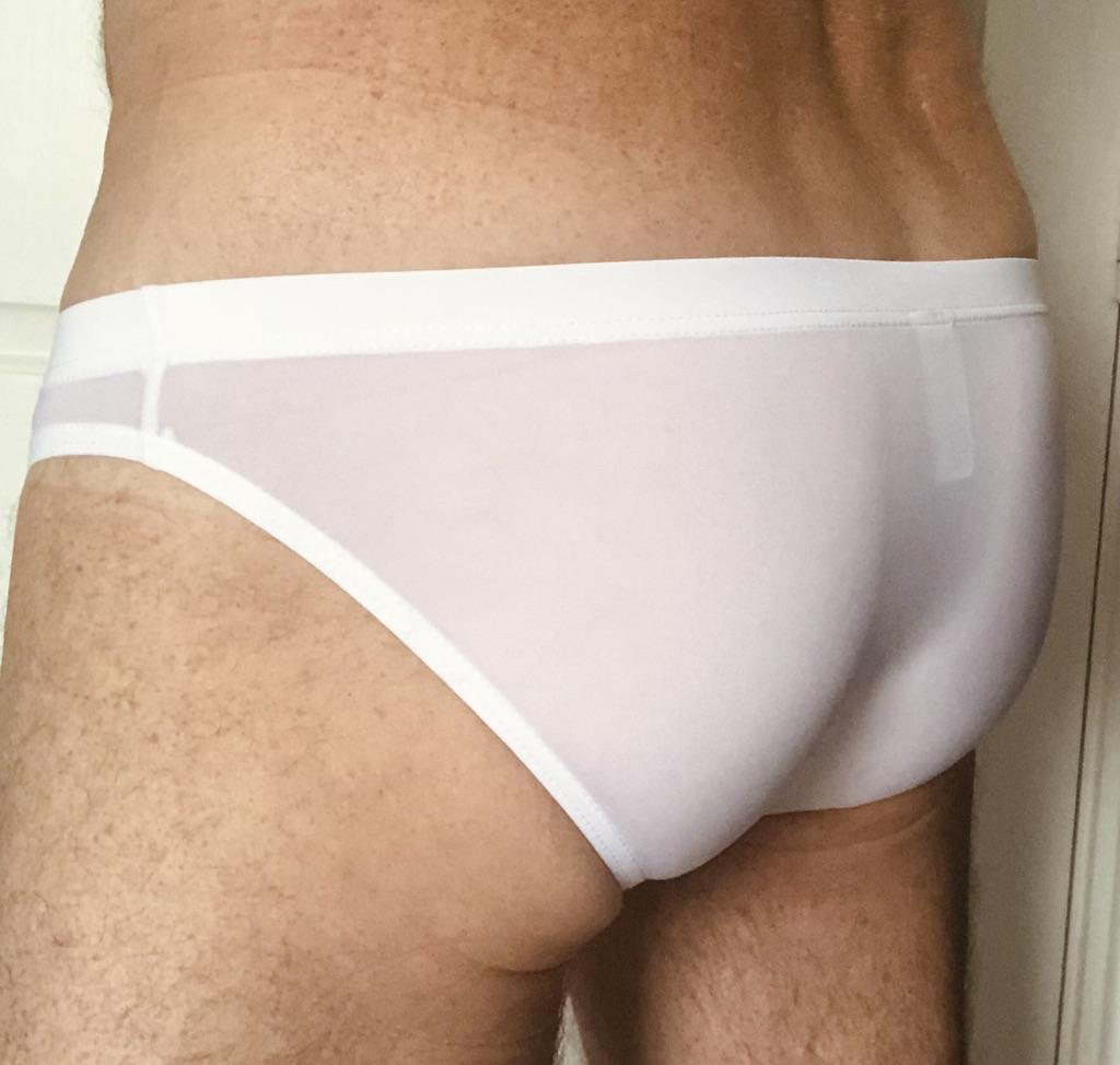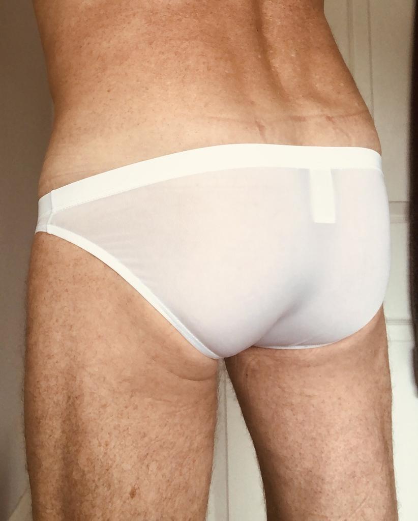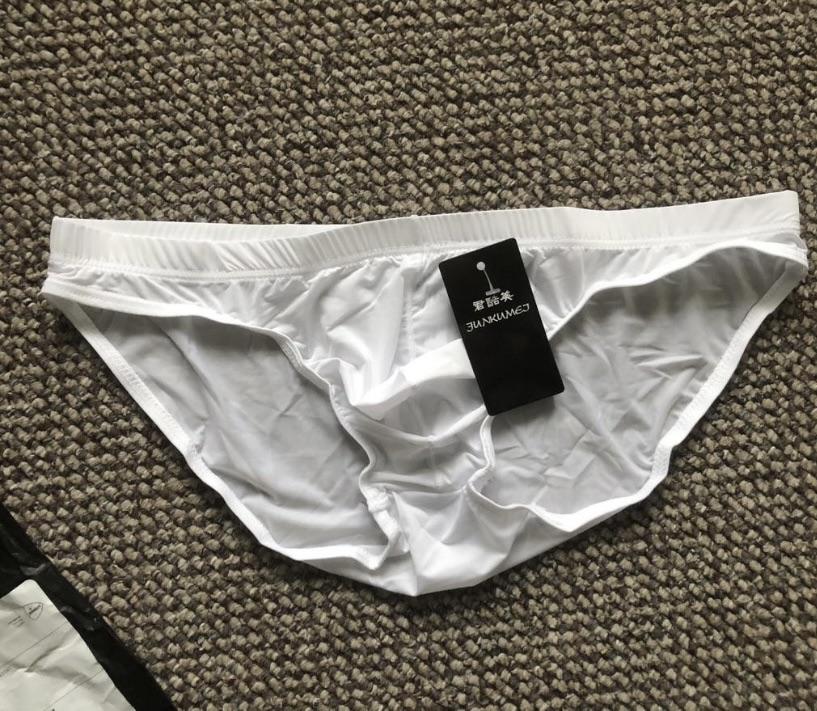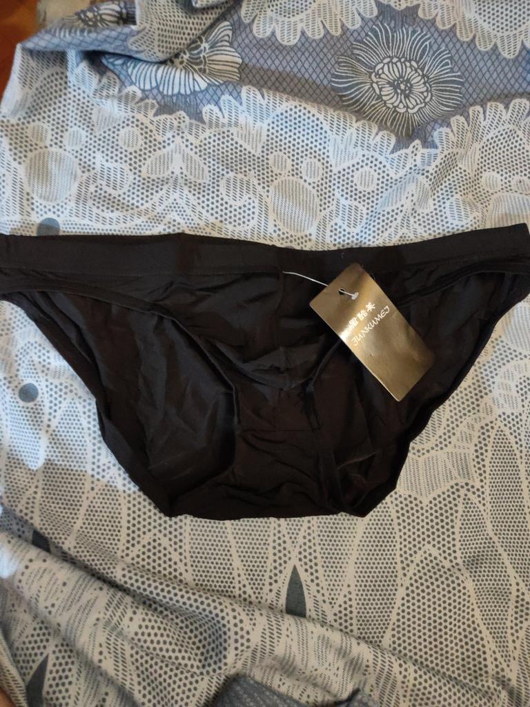Se ven pequeños, delgados, calzan 54, calzan bien (son ligeramente transparentes, aparentemente no para playas públicas).