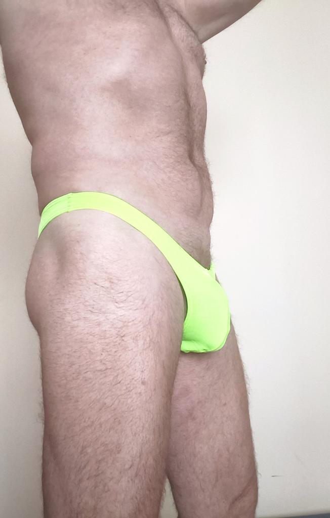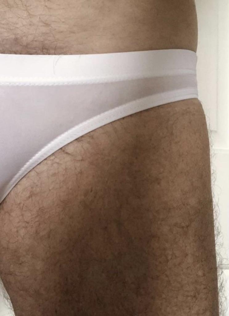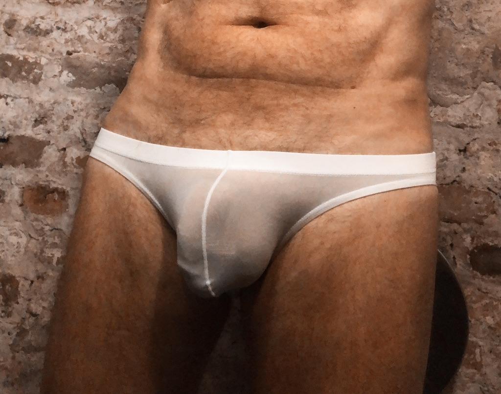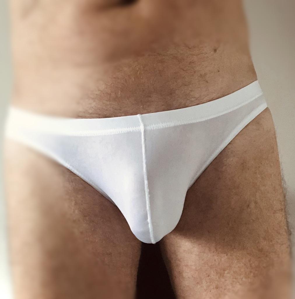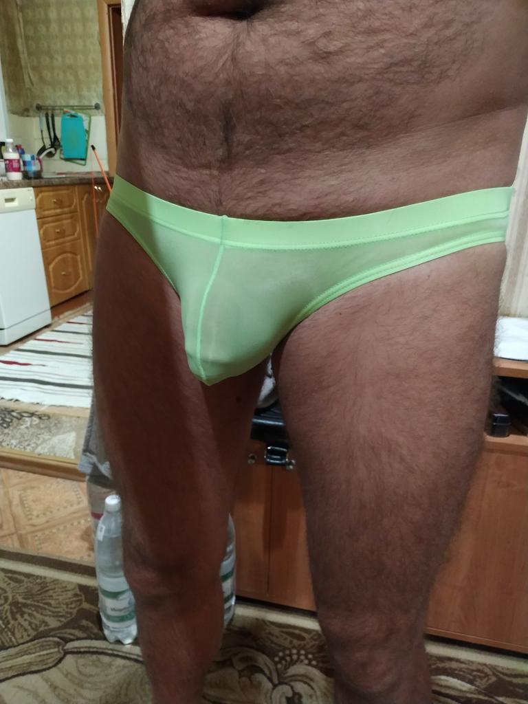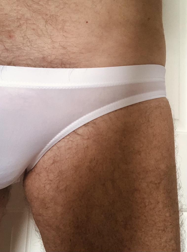 Se ven pequeños, delgados, calzan 54, calzan bien (son ligeramente transparentes, aparentemente no para playas públicas).