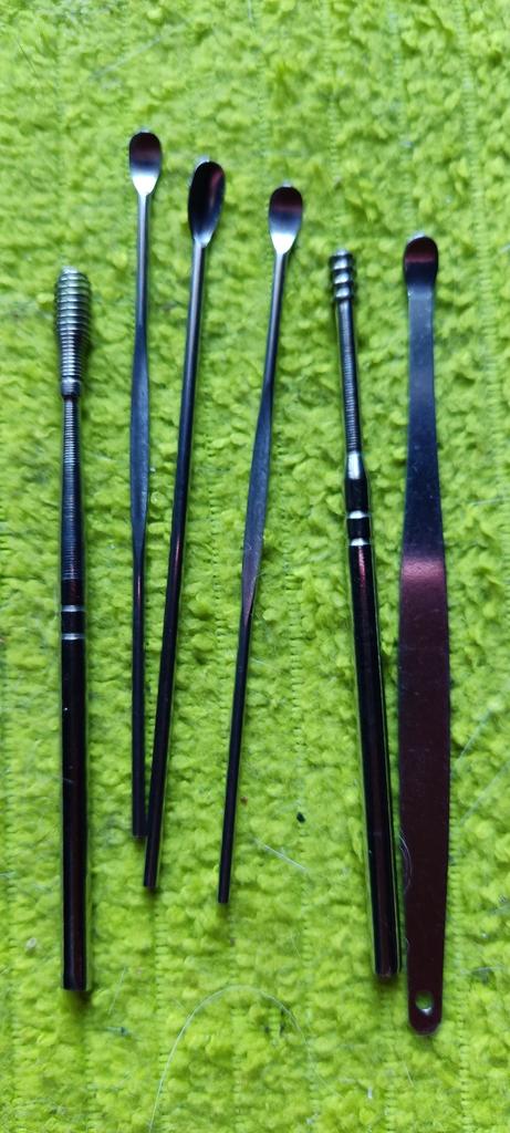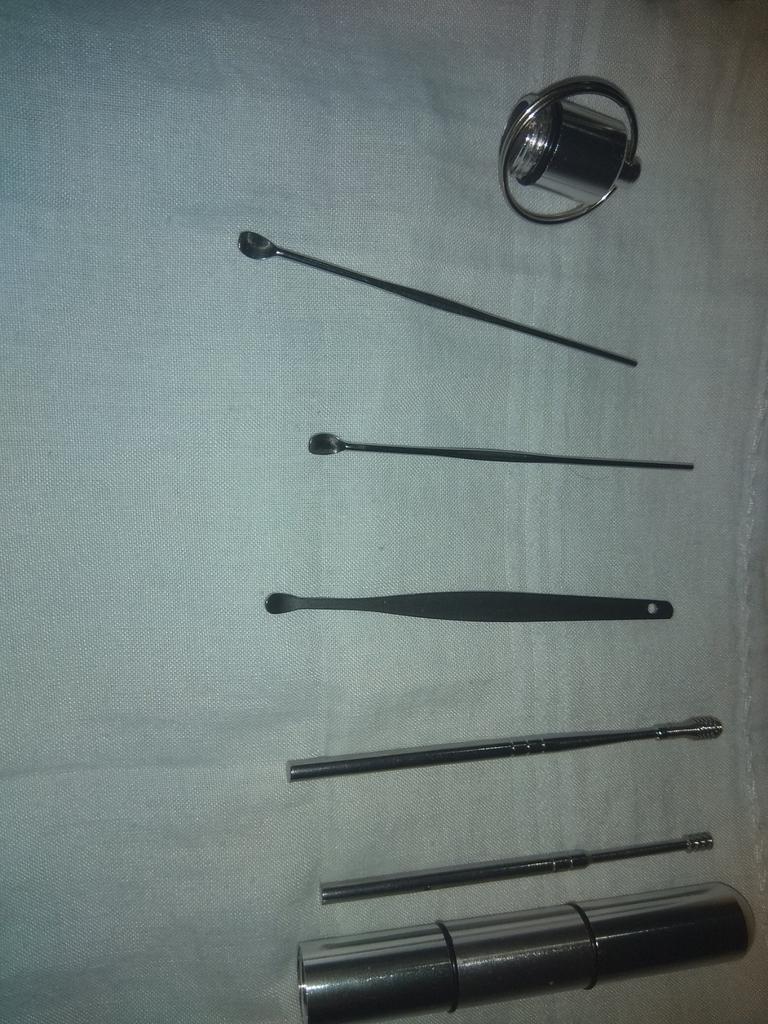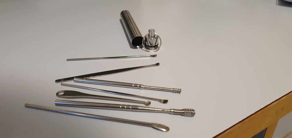 Una buena herramienta para curar los oídos. Para el cuidado diario, es necesario añadir un raspador en forma de clavo o tornillo autorroscante común con cabeza avellanada y una longitud de unos 70 mm. El clavo o el tornillo autorroscante encajan perfectamente, pero deben estar hechos del mismo material: acero inoxidable inofensivo.