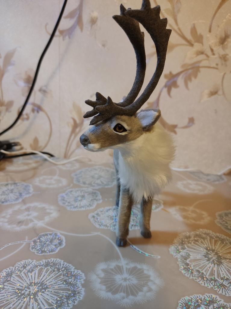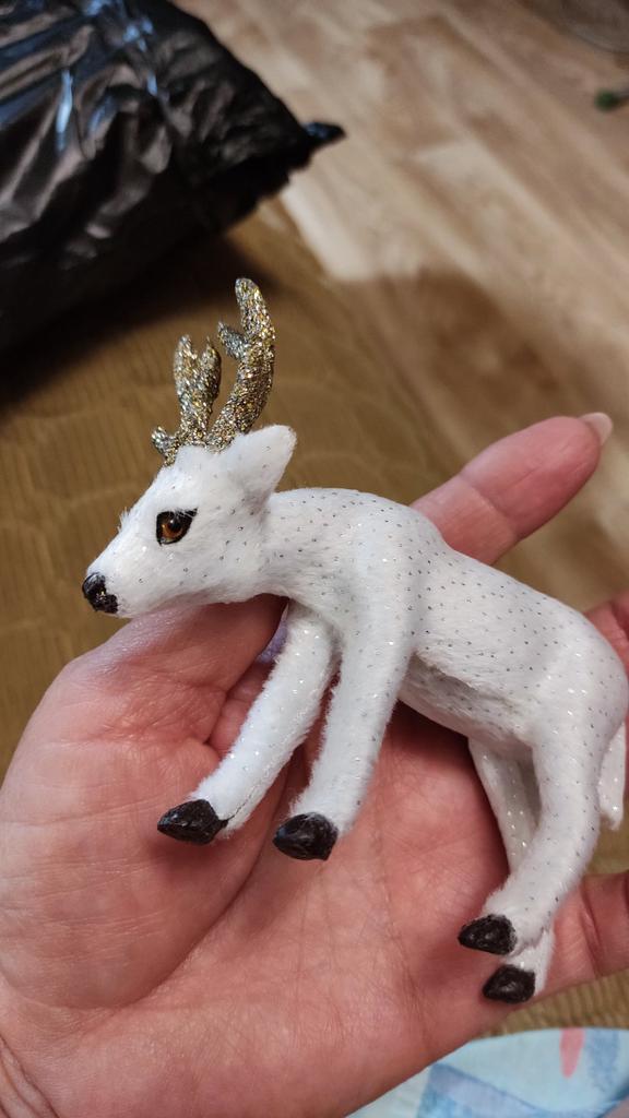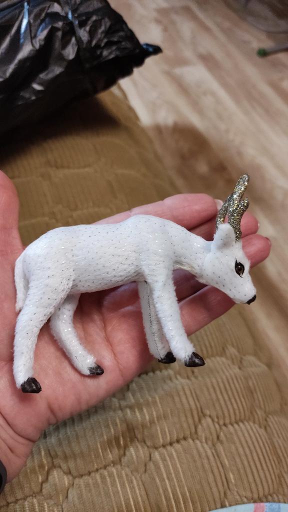 Bonito ciervo. Compré una familia entera y no me arrepiento. Estaba bien empaquetado. Todos los frágiles cuernos están intactos. Recomiendo comprar.
