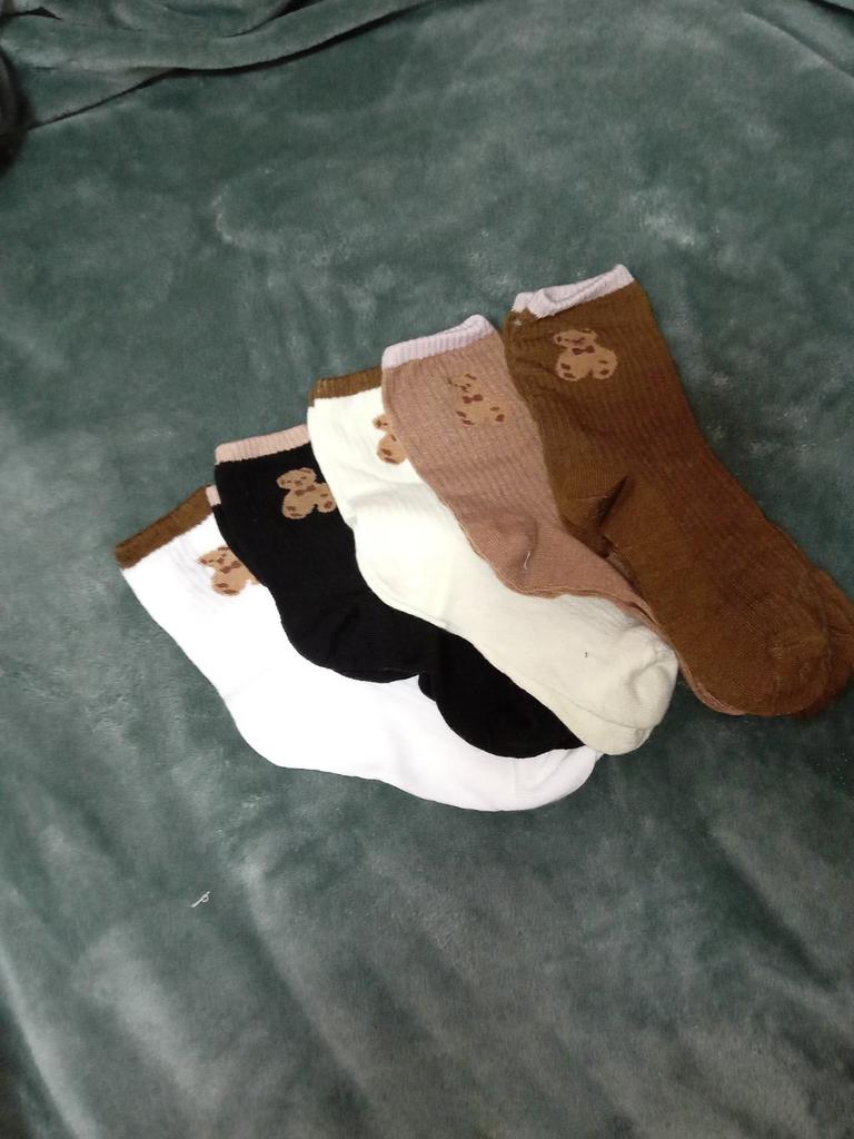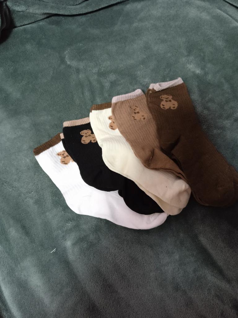 5 pares de calcetines de oso de peluche calcetines de tubo de estilo coreano para mujer calcetines gruesos y cálidos de invierno