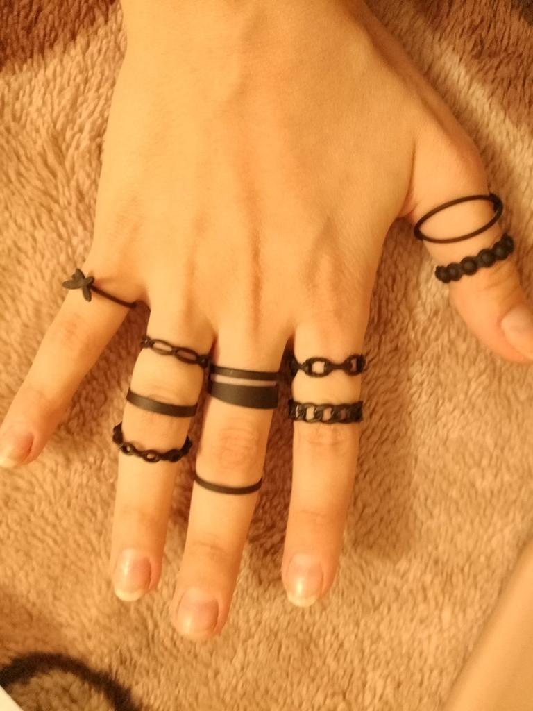 Conjunto de anillos de Metal pintados en negro para mujer, anillo de articulación de moda Punk Hip Hop Street, regalo de joyería