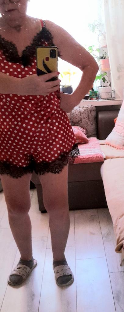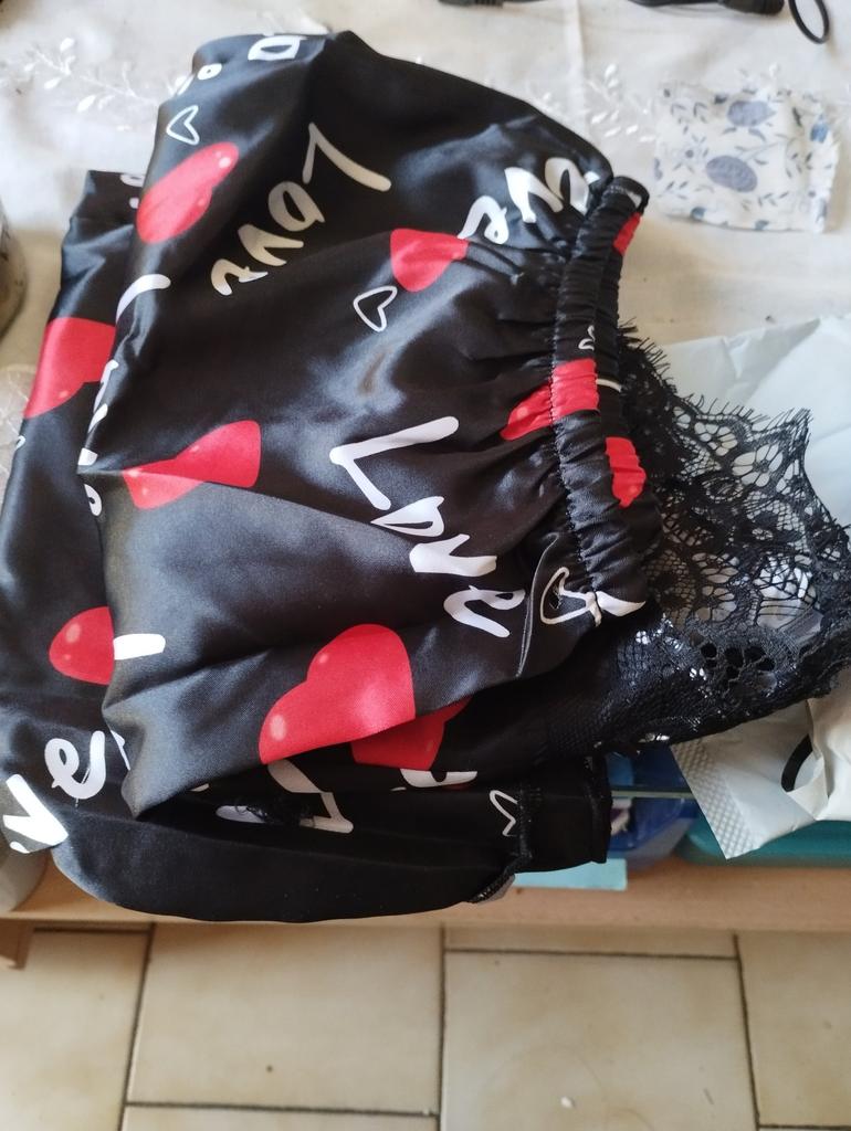 Los shorts de niquel, la parte superior un poco demasiado grande xl mientras que mido 38/40, la parte superior tiene que ser cortada y cosida demasiado larga, después de una bonita parte inferior también recuperada de la costurera, agradable de llevar mi marido lo encuentra sexy