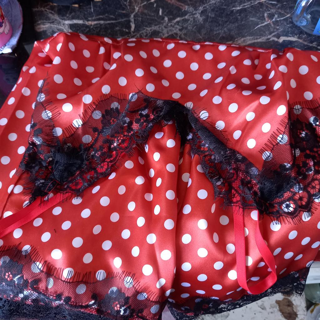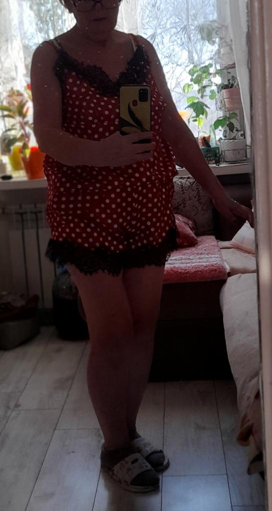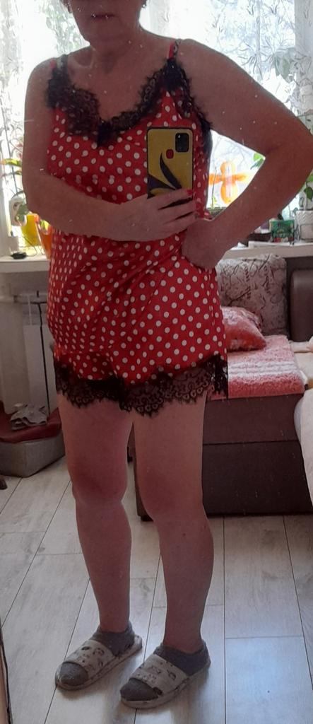 Mide muy poco. No hay etiqueta de tamaño, tal vez se envió el tamaño incorrecto 🤔 No es suficiente en términos de volumen 🤪 10 cm. La tela es fácil de planchar, sintética, pensé que sería más suave, pero me recordó a la tela con la que están hechos los paraguas 🤣🤣🤣 no electrifica, el encaje es muy fino, no vibra (transpirable).. Lo usaría si la talla me queda bien.