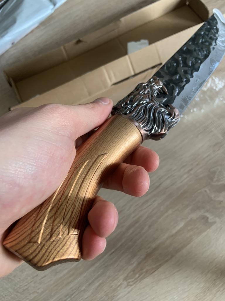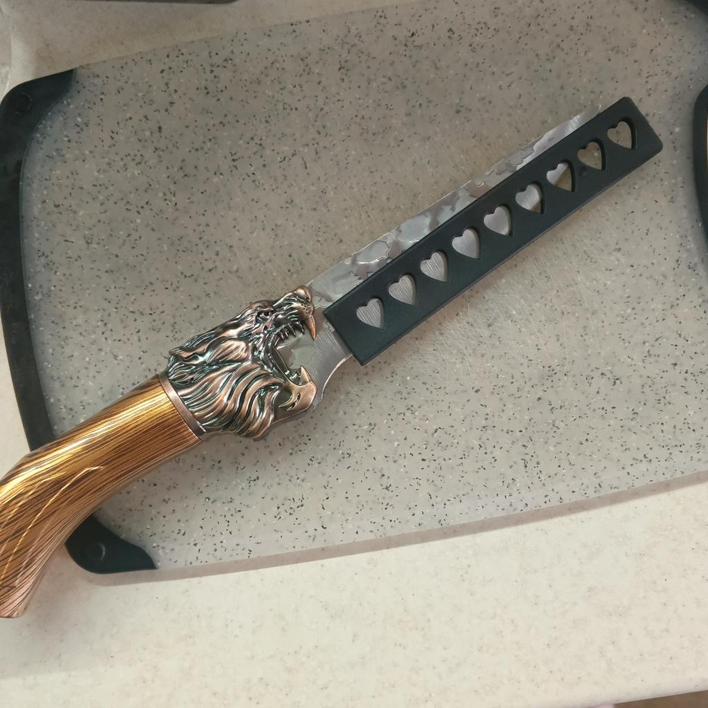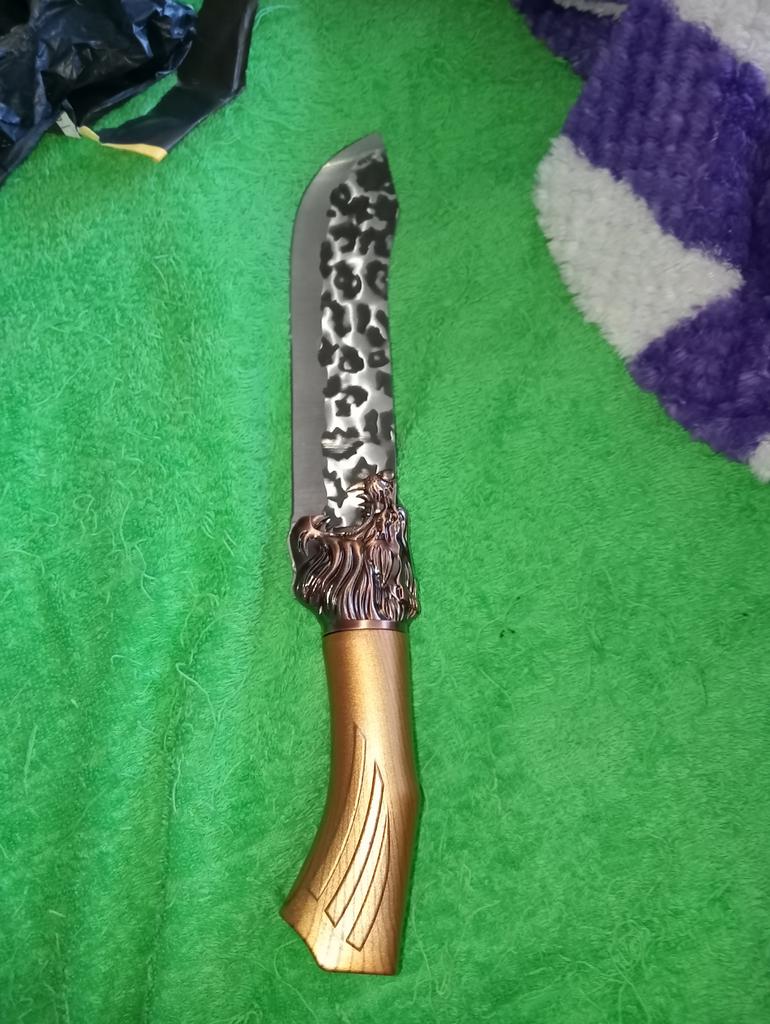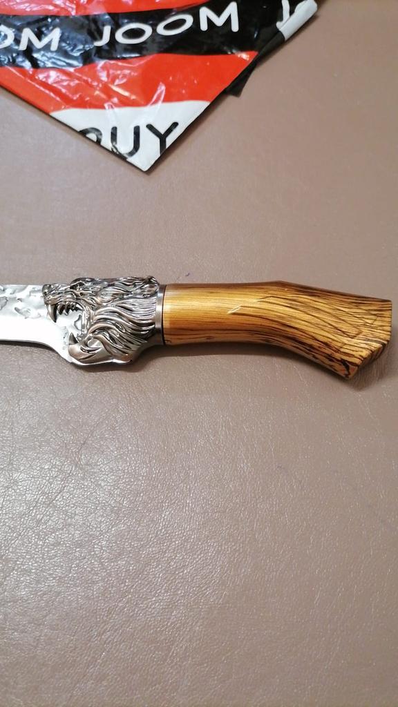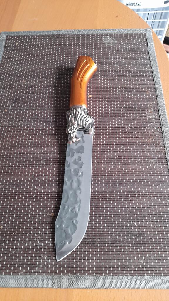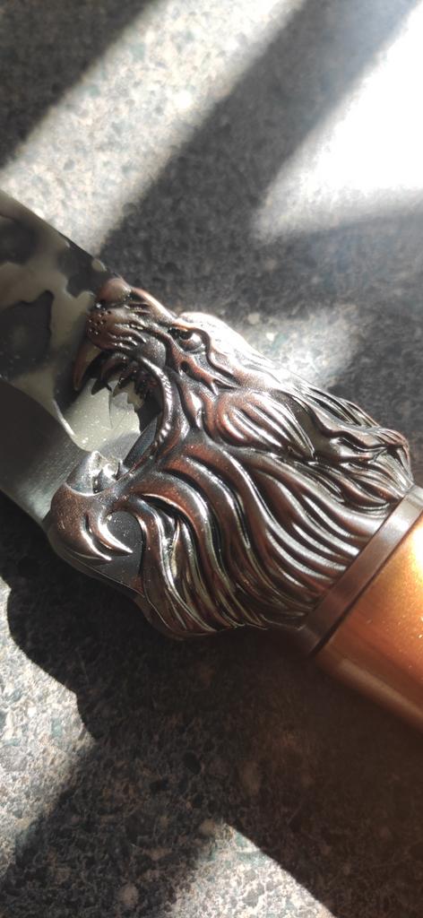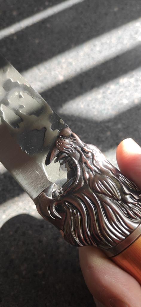 hola espero que estes bien ? Amo tanto este cuchillo 🥰 Ya tengo otro de este vendedor. La hoja es muy afilada.. Los detalles de la hoja son hermosos ❤️ El agarre es realmente perfecto.. Y la cabeza de león es realmente soberbia.. Llegó muy bien embalado y rápidamente a Francia.. Si buscas buenos cuchillos, te lo recomiendo.