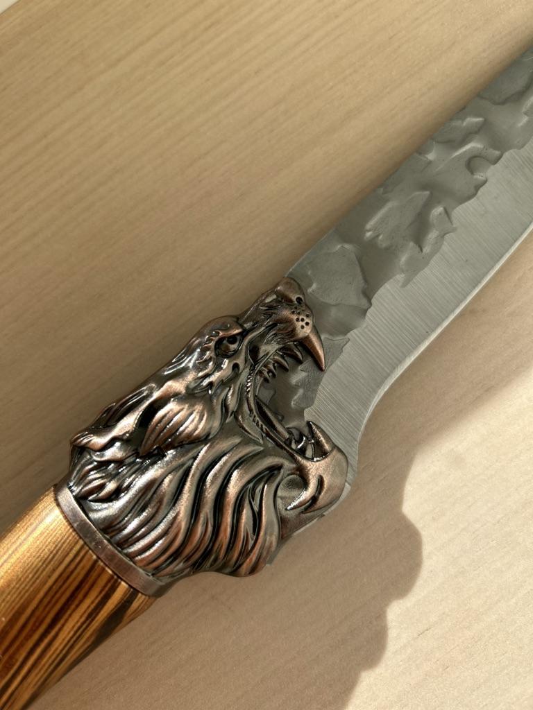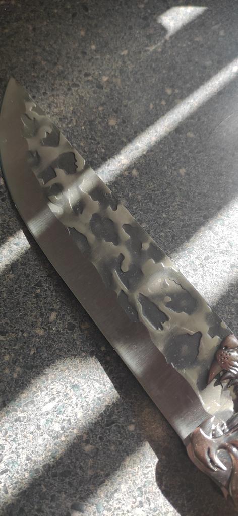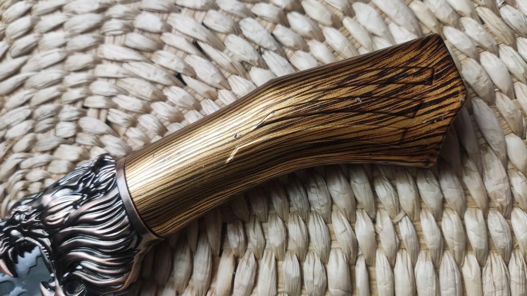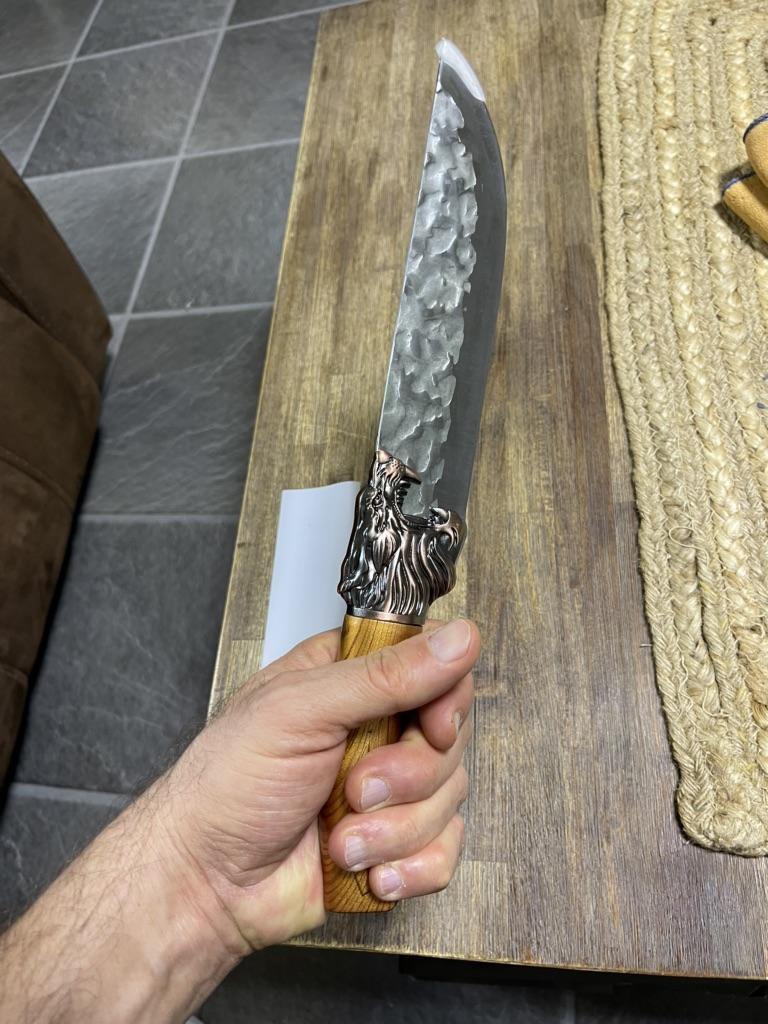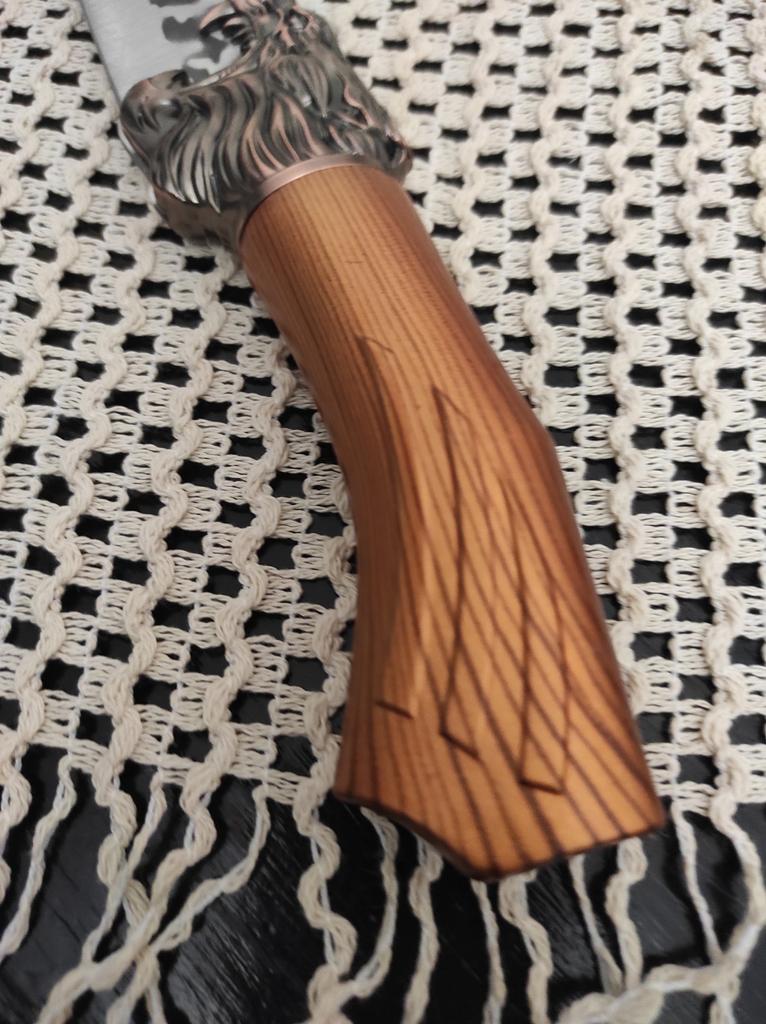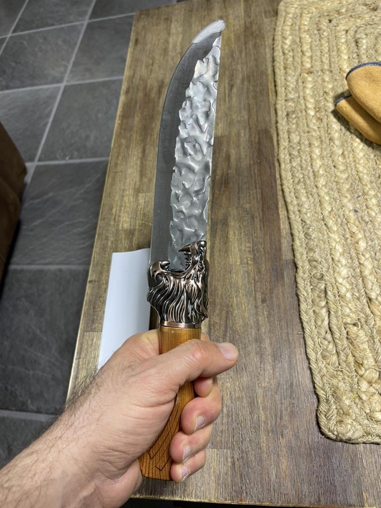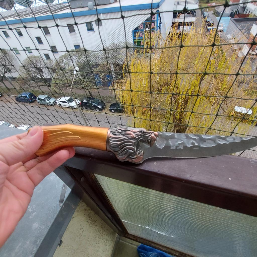 hola espero que estes bien ? Amo tanto este cuchillo 🥰 Ya tengo otro de este vendedor. La hoja es muy afilada.. Los detalles de la hoja son hermosos ❤️ El agarre es realmente perfecto.. Y la cabeza de león es realmente soberbia.. Llegó muy bien embalado y rápidamente a Francia.. Si buscas buenos cuchillos, te lo recomiendo.