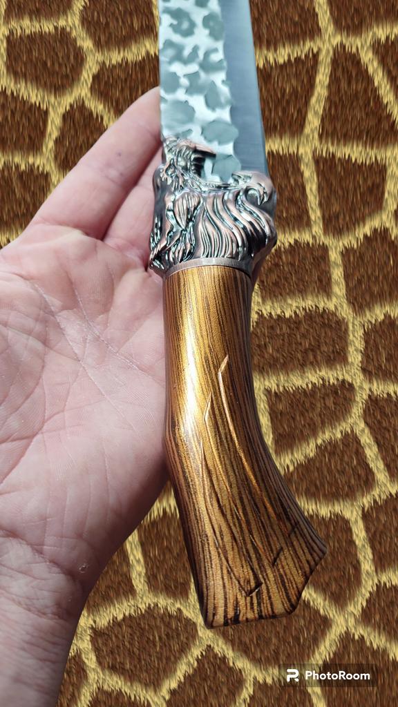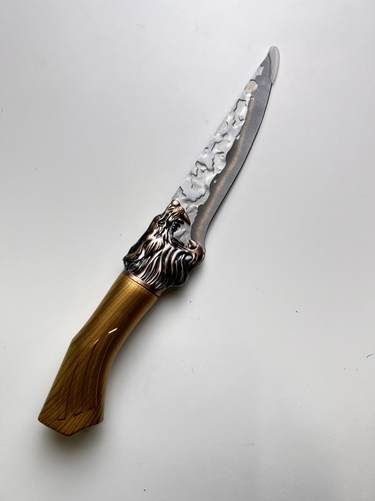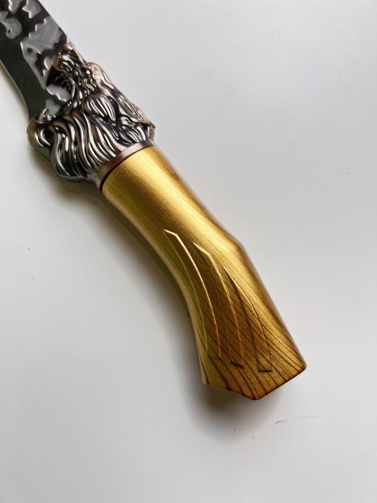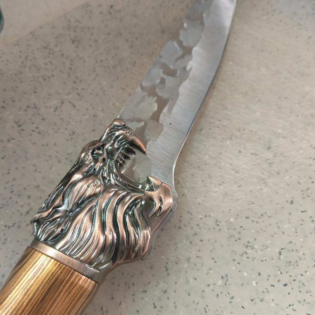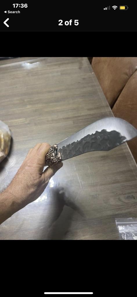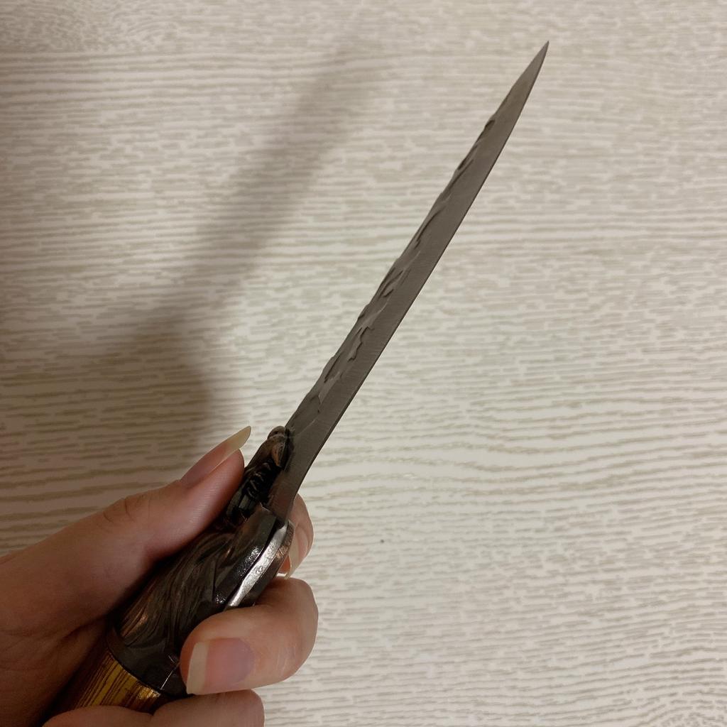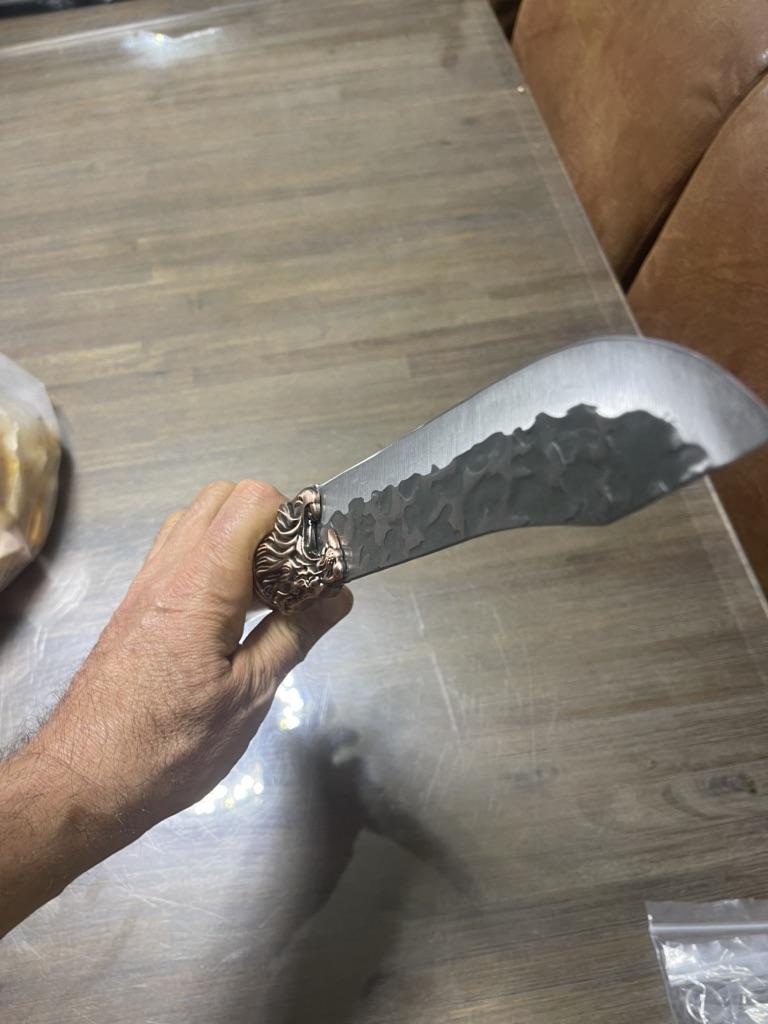 hola espero que estes bien ? Amo tanto este cuchillo 🥰 Ya tengo otro de este vendedor. La hoja es muy afilada.. Los detalles de la hoja son hermosos ❤️ El agarre es realmente perfecto.. Y la cabeza de león es realmente soberbia.. Llegó muy bien embalado y rápidamente a Francia.. Si buscas buenos cuchillos, te lo recomiendo.