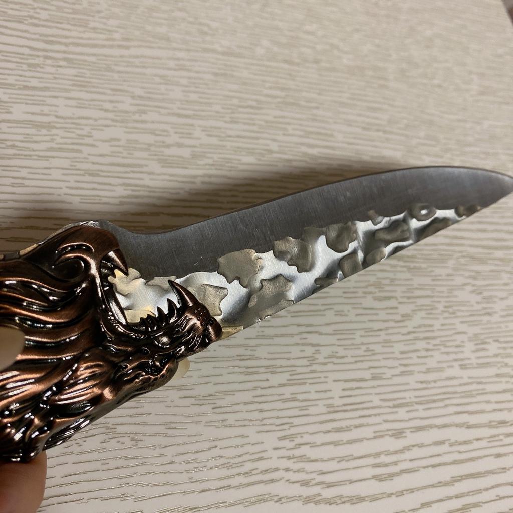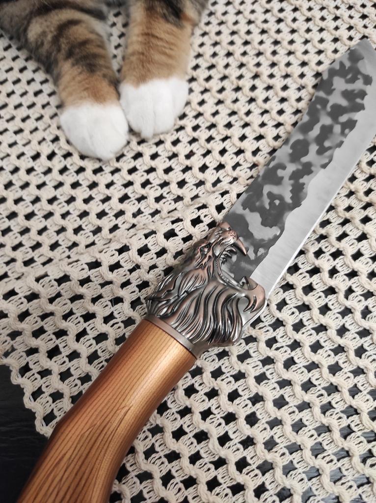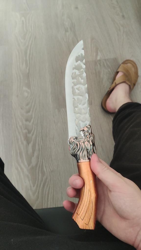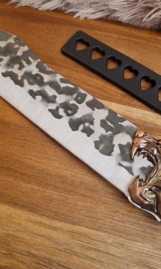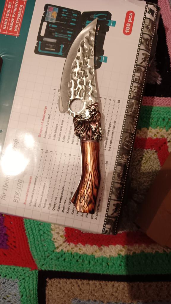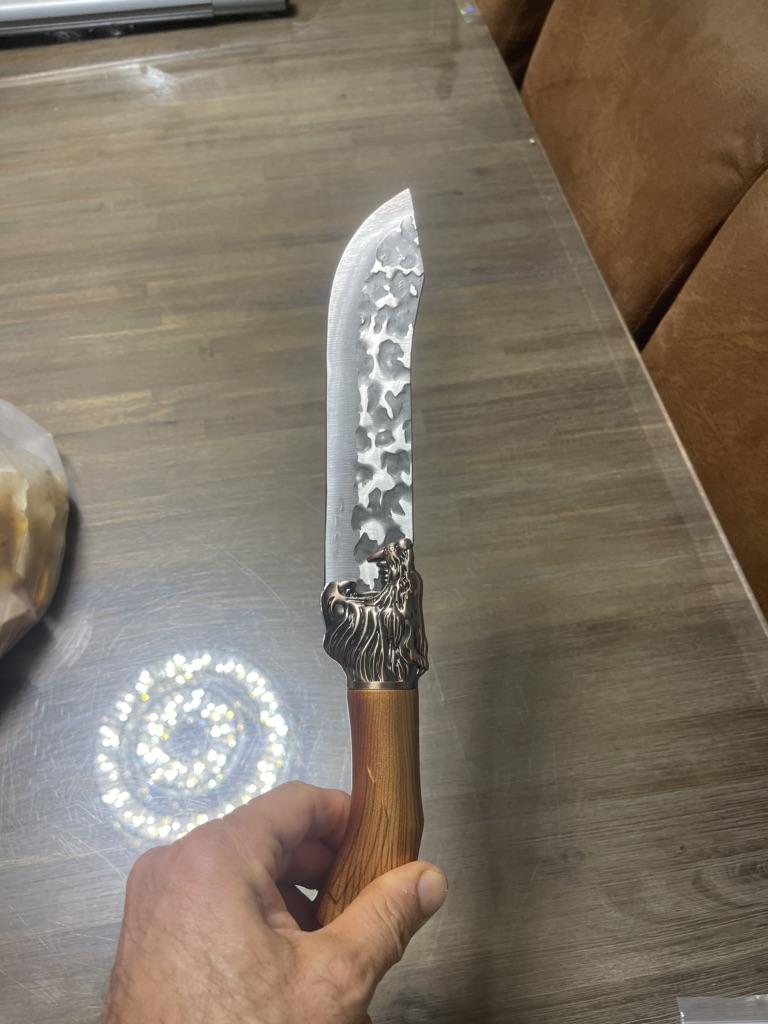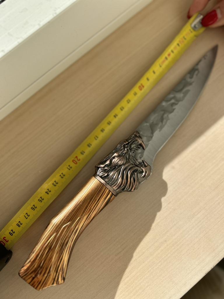 hola espero que estes bien ? Amo tanto este cuchillo 🥰 Ya tengo otro de este vendedor. La hoja es muy afilada.. Los detalles de la hoja son hermosos ❤️ El agarre es realmente perfecto.. Y la cabeza de león es realmente soberbia.. Llegó muy bien embalado y rápidamente a Francia.. Si buscas buenos cuchillos, te lo recomiendo.