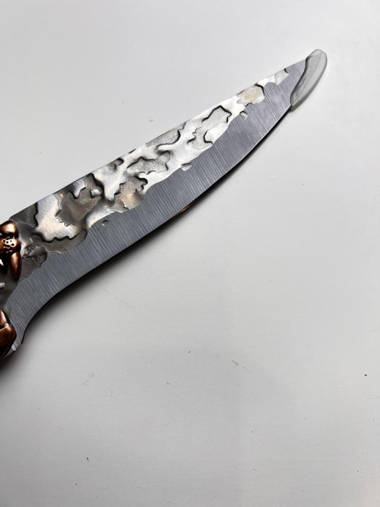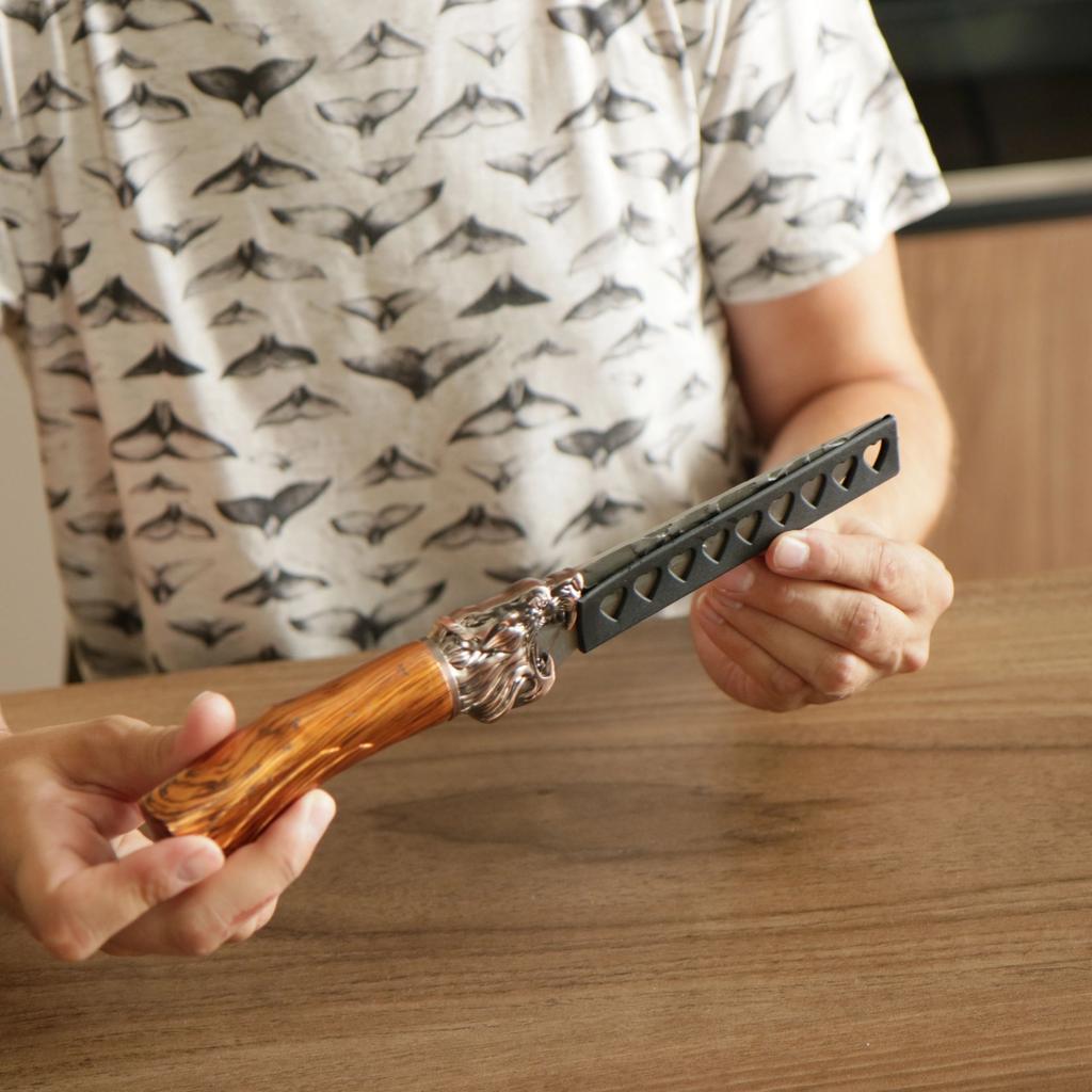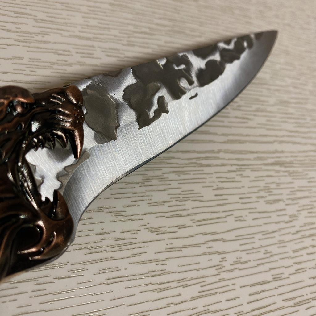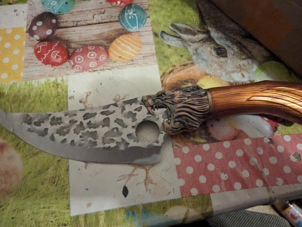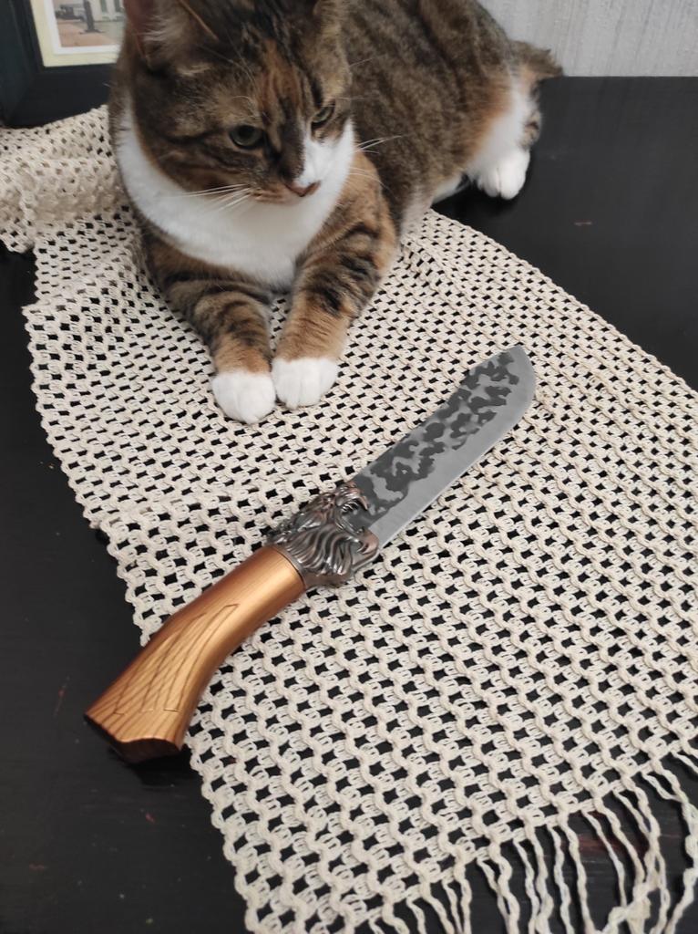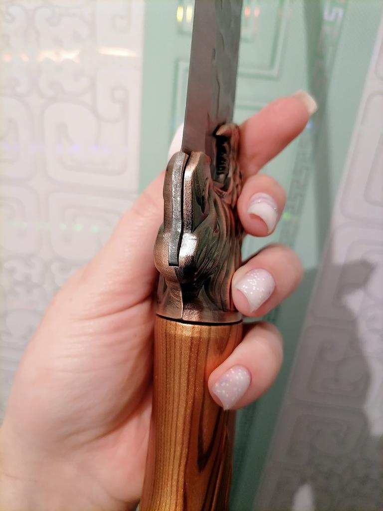 hola espero que estes bien ? Amo tanto este cuchillo 🥰 Ya tengo otro de este vendedor. La hoja es muy afilada.. Los detalles de la hoja son hermosos ❤️ El agarre es realmente perfecto.. Y la cabeza de león es realmente soberbia.. Llegó muy bien embalado y rápidamente a Francia.. Si buscas buenos cuchillos, te lo recomiendo.