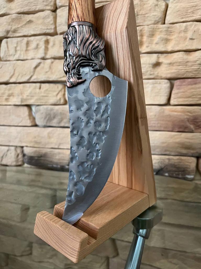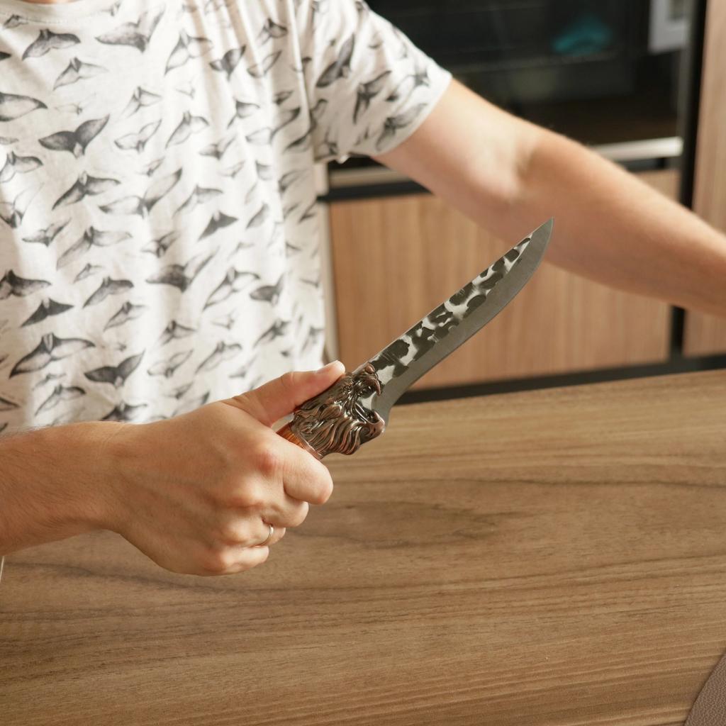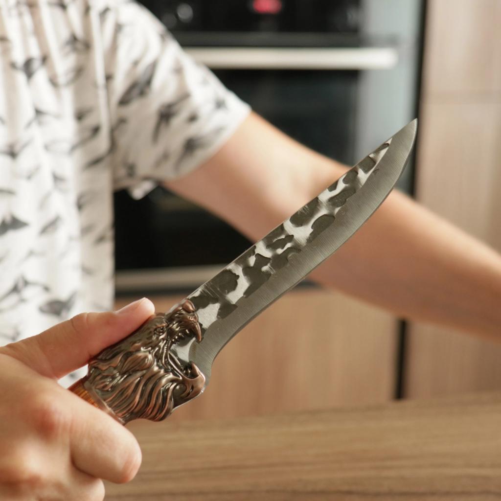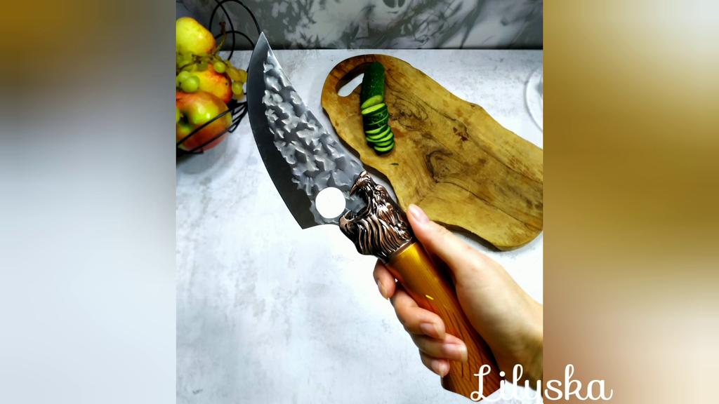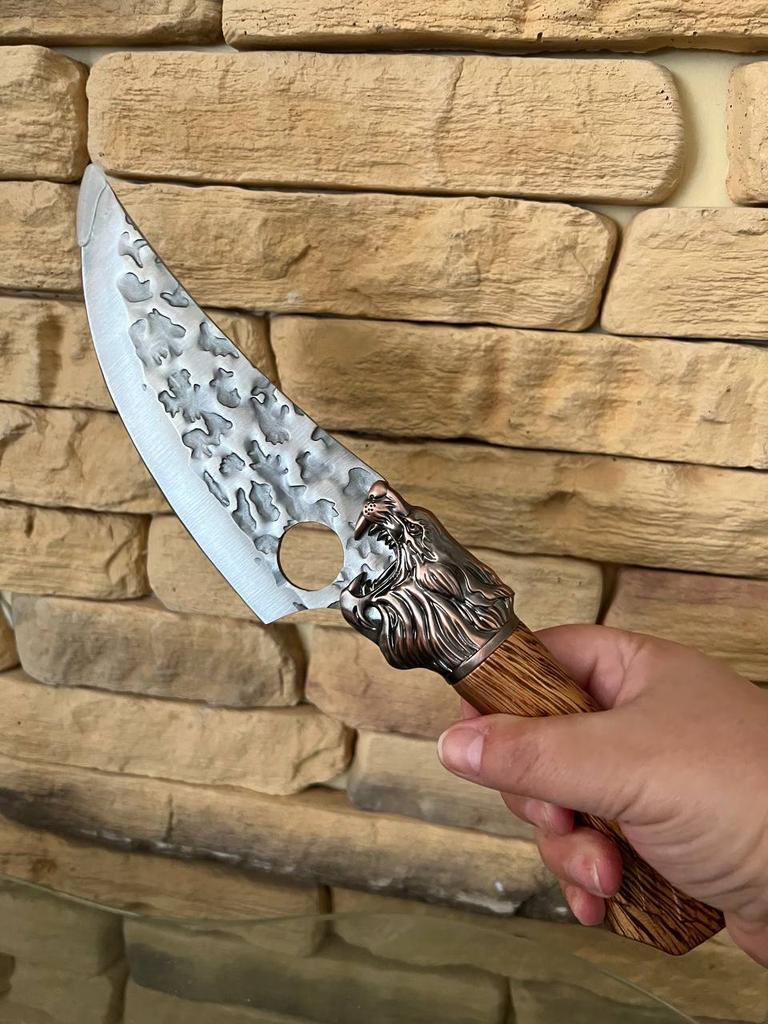 🔪Cuchillo de cocina fuerte en un gran diseño 🔪Distintas versiones disponibles 🔪Hoja de acero inoxidable afilada y estable 🔪Grandes decoraciones en la hoja y más estilizadas Cabeza de lobo en el mango. 🔪Agujero en la hoja para ejercer presión cuando poder cortar 🔪 Entregado rápidamente y bien embalado 🔪Buen precio para esta calidad 👍