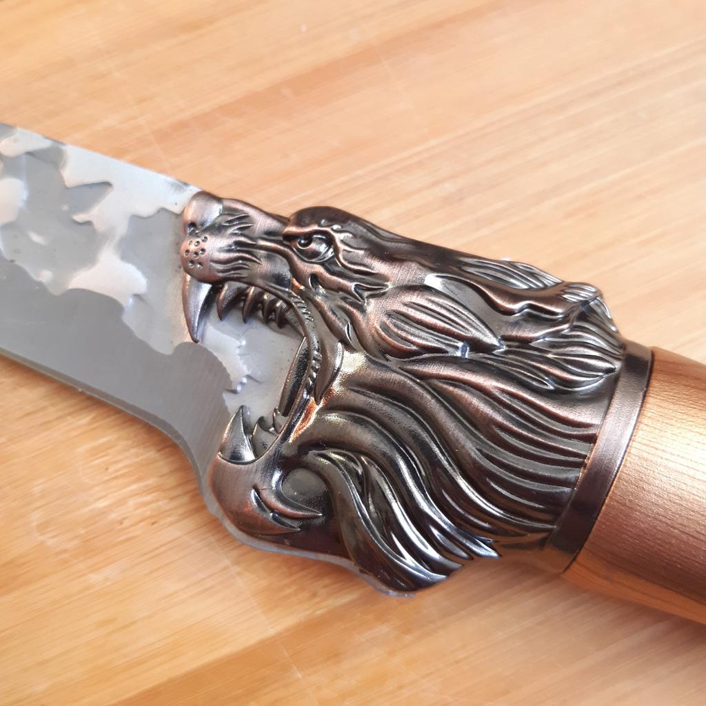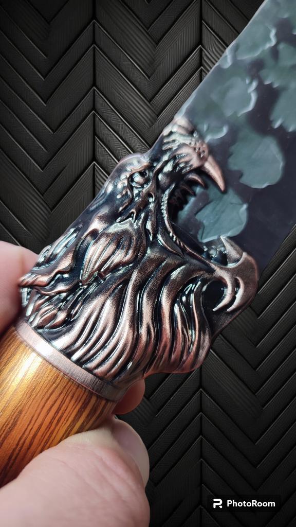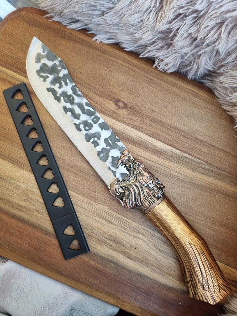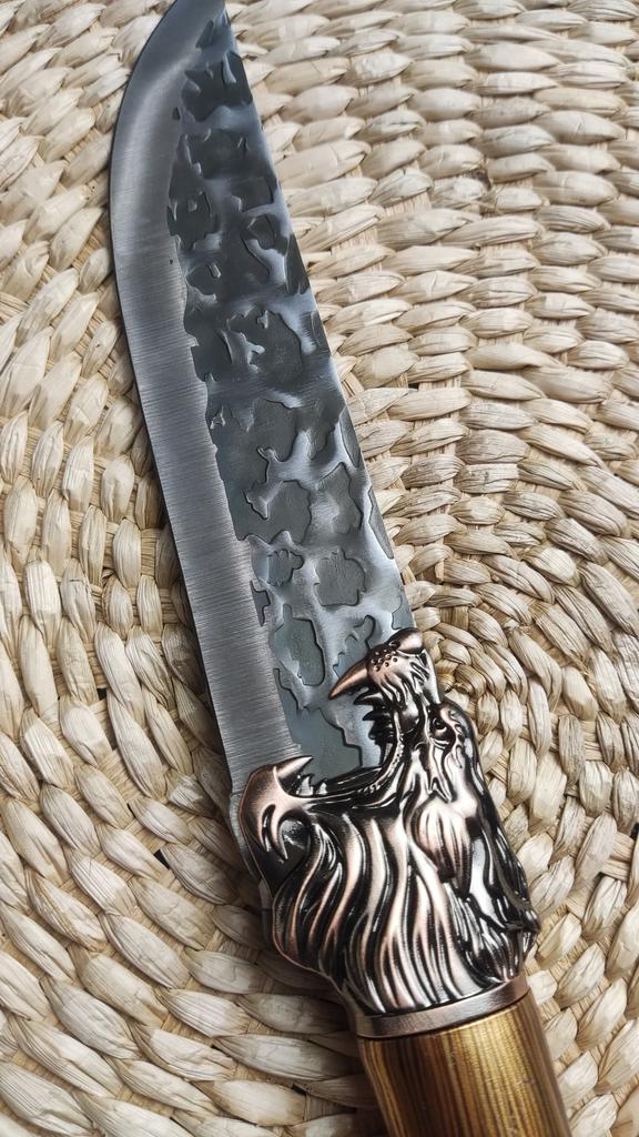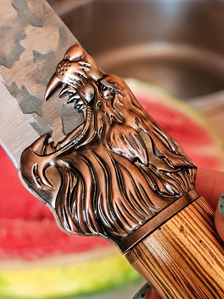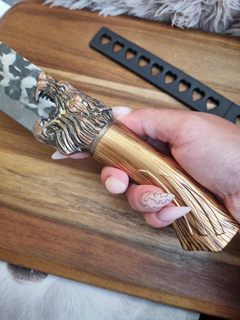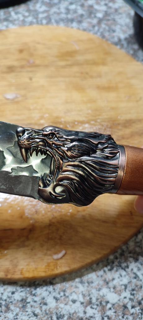 🔪Cuchillo de cocina fuerte en un gran diseño 🔪Distintas versiones disponibles 🔪Hoja de acero inoxidable afilada y estable 🔪Grandes decoraciones en la hoja y más estilizadas Cabeza de lobo en el mango. 🔪 Entregado rápidamente y bien embalado 🔪Buen precio para esta calidad 👍