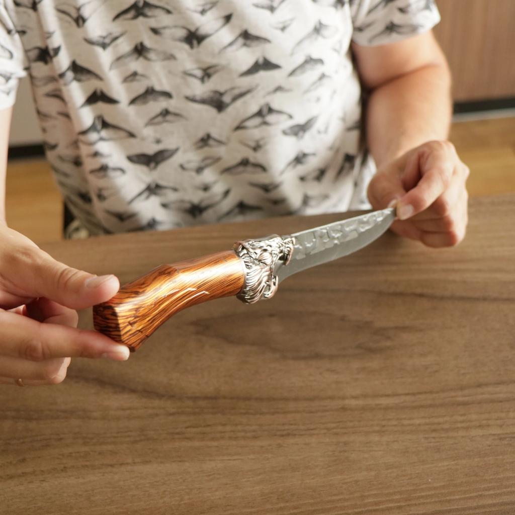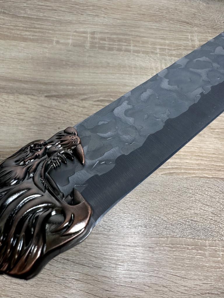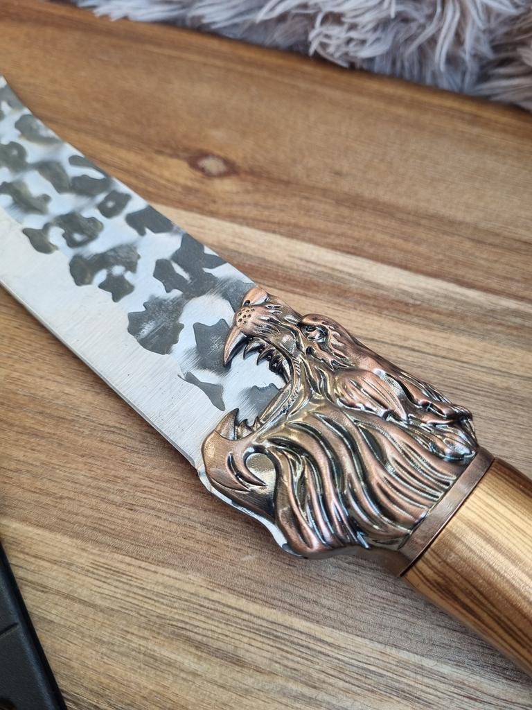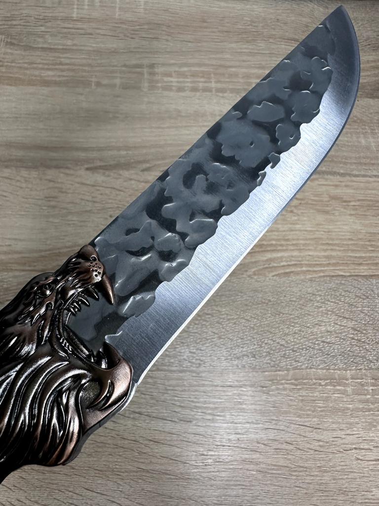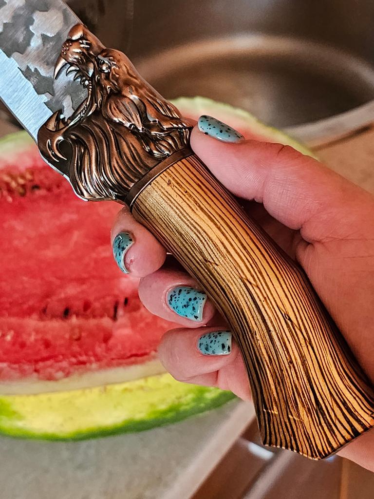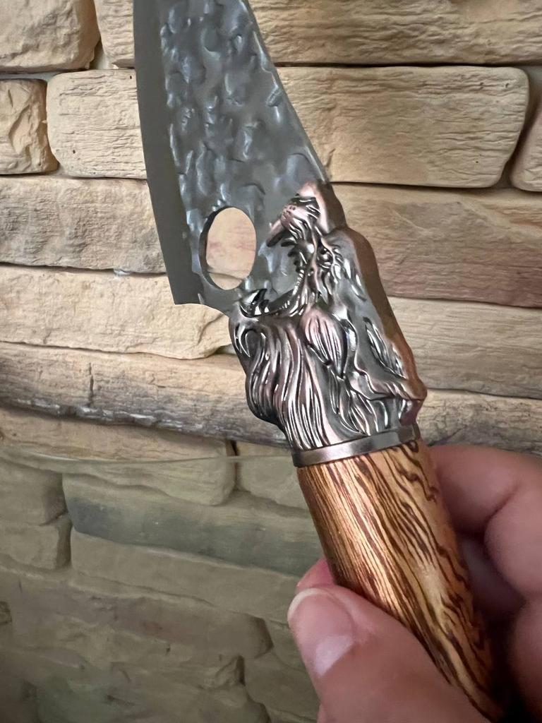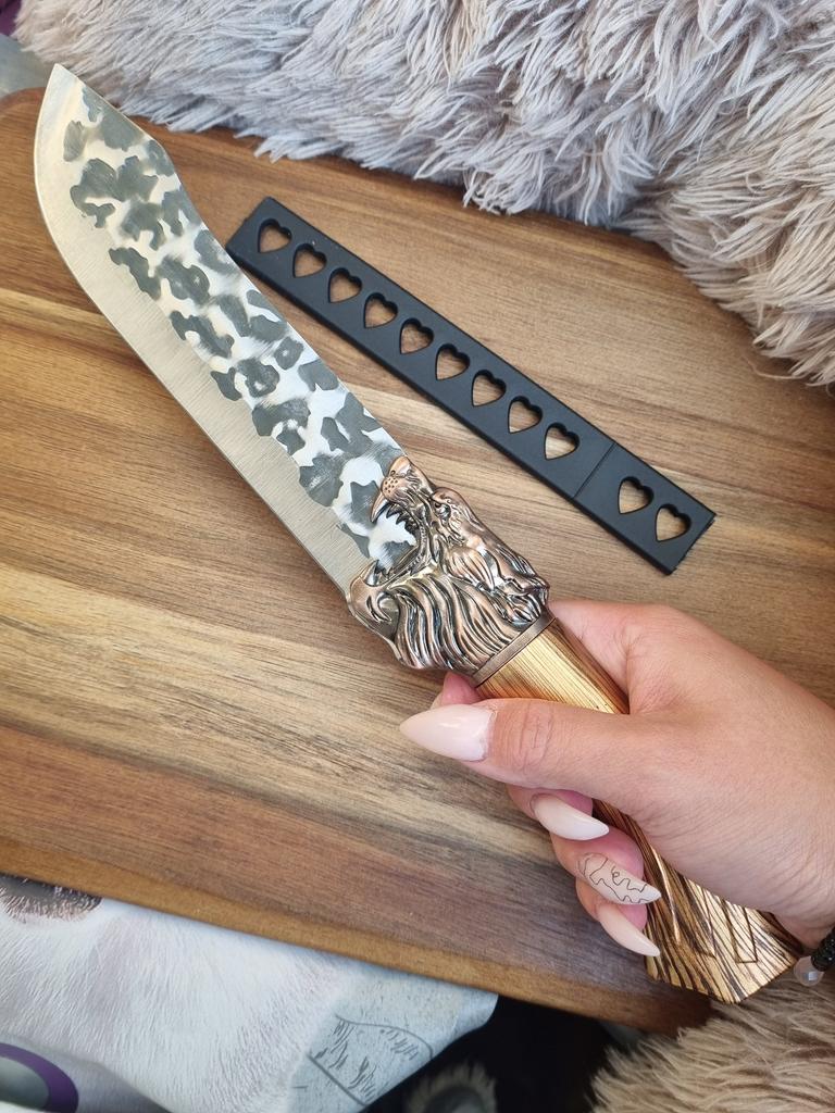 🔪Cuchillo de cocina fuerte en un gran diseño 🔪Distintas versiones disponibles 🔪Hoja de acero inoxidable afilada y estable 🔪Grandes decoraciones en la hoja y más estilizadas Cabeza de lobo en el mango. 🔪 Entregado rápidamente y bien embalado 🔪Buen precio para esta calidad 👍