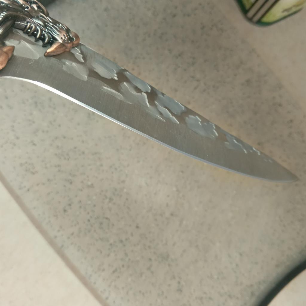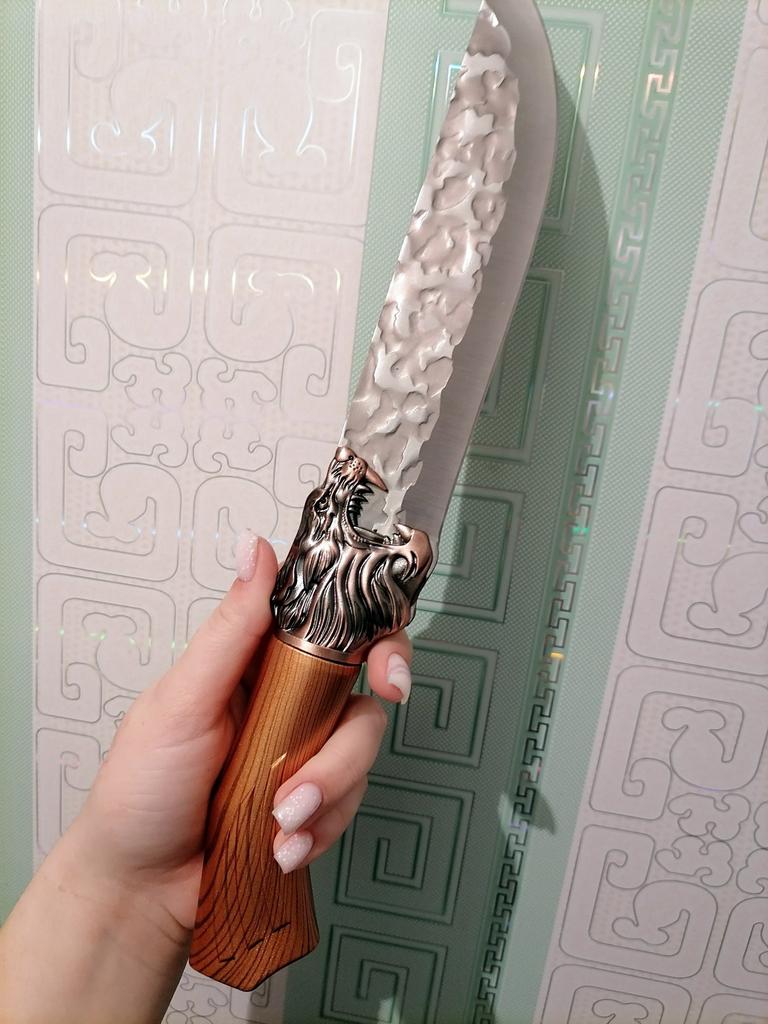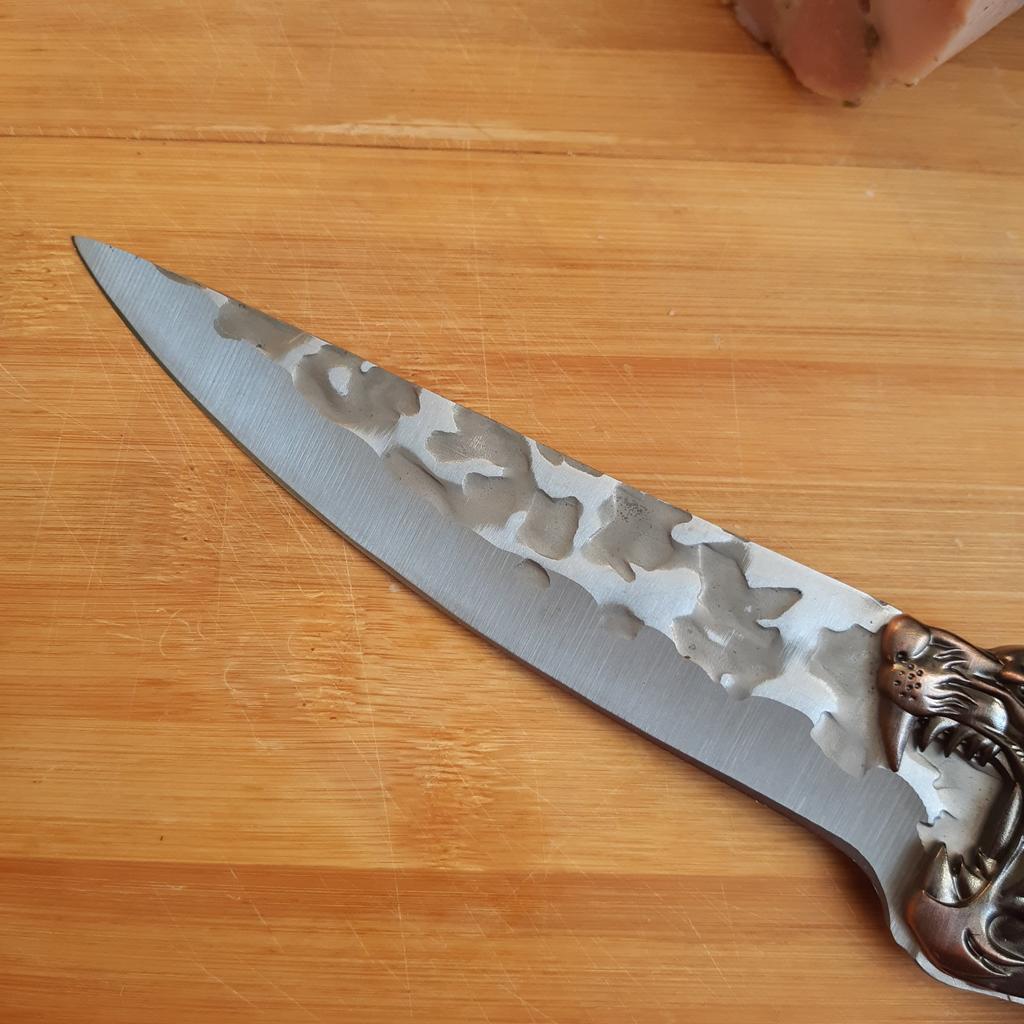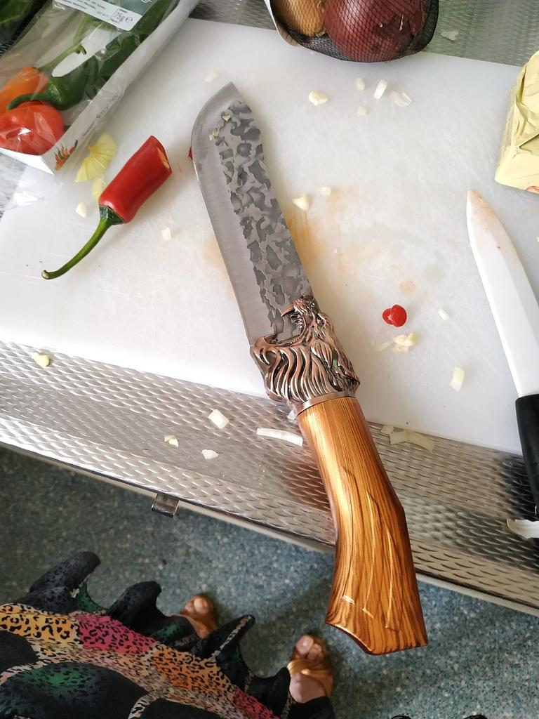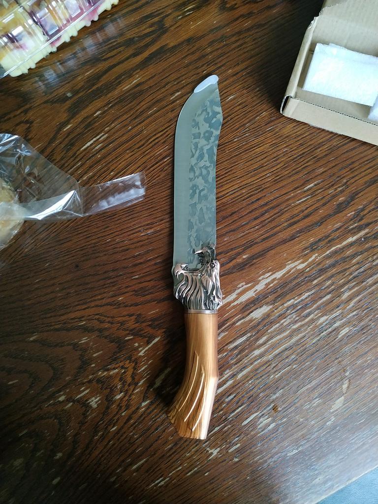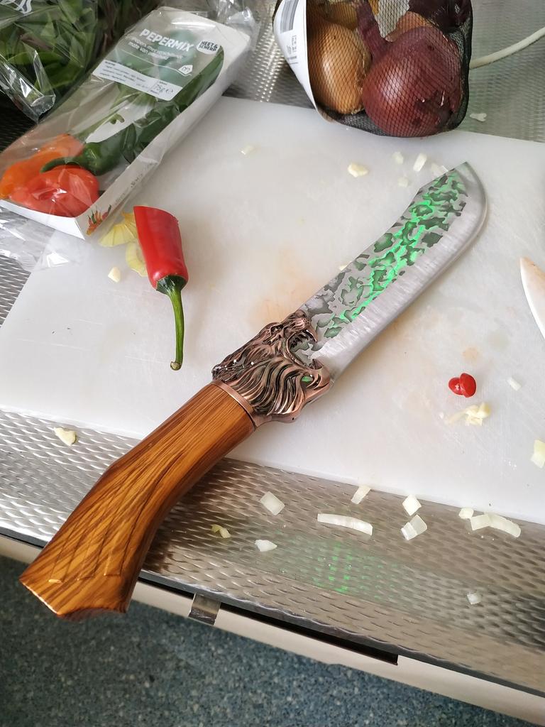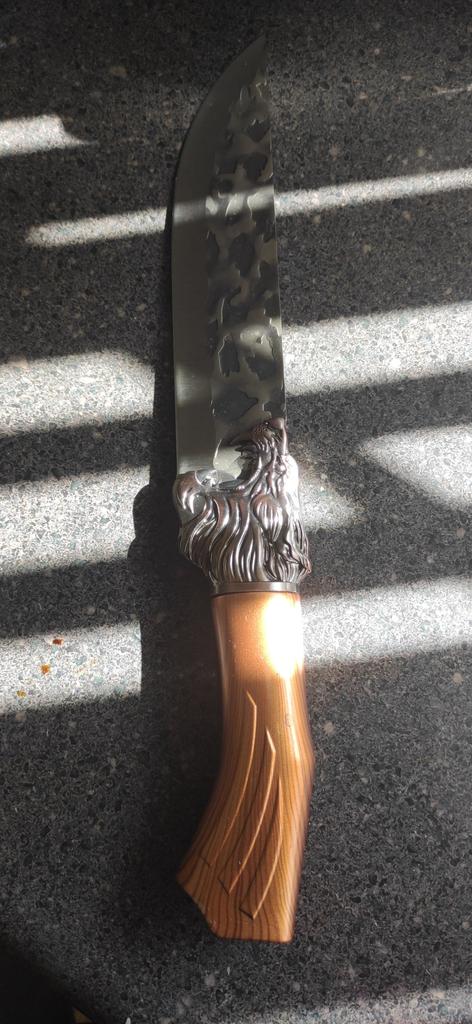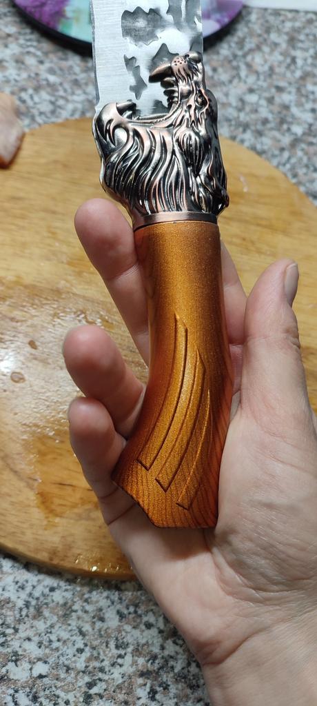 Gran cuchillo de acero inoxidable. ¡Estoy impresionado! 👍💪❗️Es tan afilado que creo que puedes cortar cualquier cosa. 👍🤗🤗 Ahora me ayuda mucho en la cocina! Pescado, carne este cuchillo corta súper rápido Este es un cuchillo hecho a mano 🔪 que tiene un hermoso diseño. El mango es ligero pero la hoja es pesada. El mango está hecho de plástico, el león está hecho de metal. Después de su uso, el cuchillo se puede limpiar rápidamente. ¡Buena calidad! no vi ningun inconveniente. ✅️La entrega a Alemania tardó unas 3 semanas. El producto fue empacado en una caja segura y llegó sin daños. Le doy 5 estrellas 🌟 de 5 y lo recomiendo!. ¡Gracias Joom y al vendedor!🤗🤗🤗 ¡Usa mi código "JOOMDEOCTOBER" para un 10 % de descuento en todo!