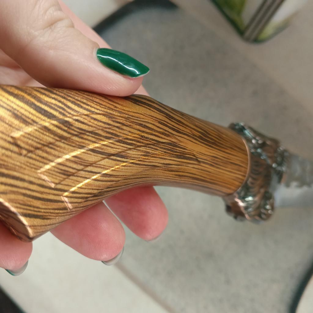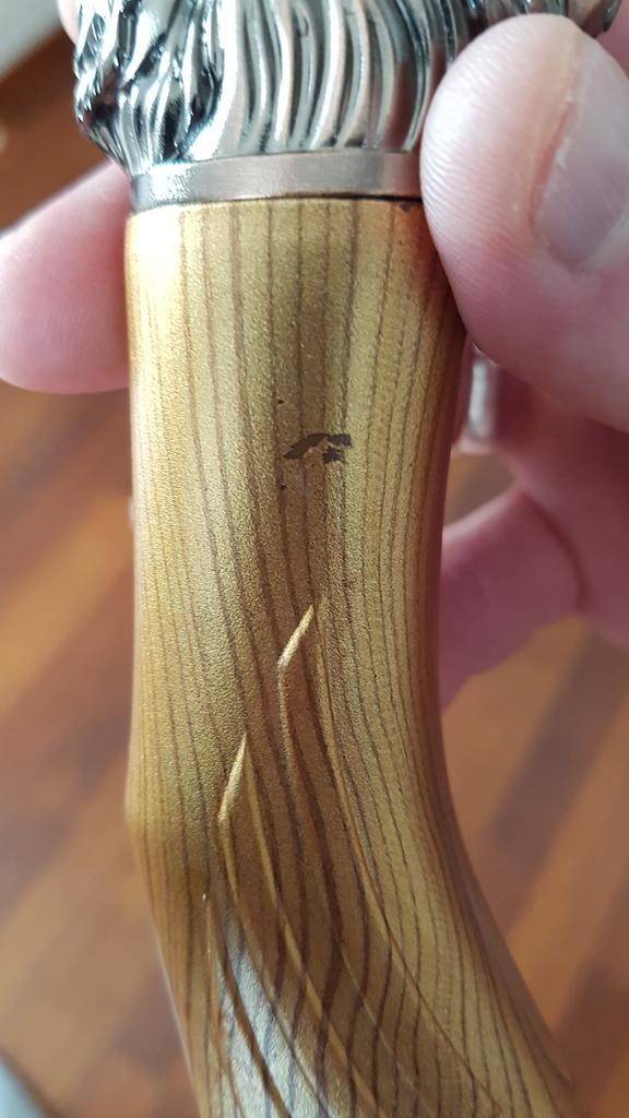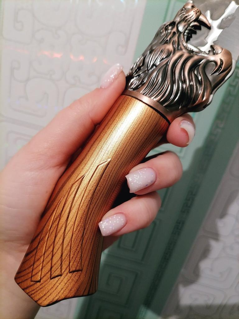 Buena hoja, la cabeza de león es genial, pero el mango lo decepciona, ya que es de plástico dorado. Todavía está bien por el precio