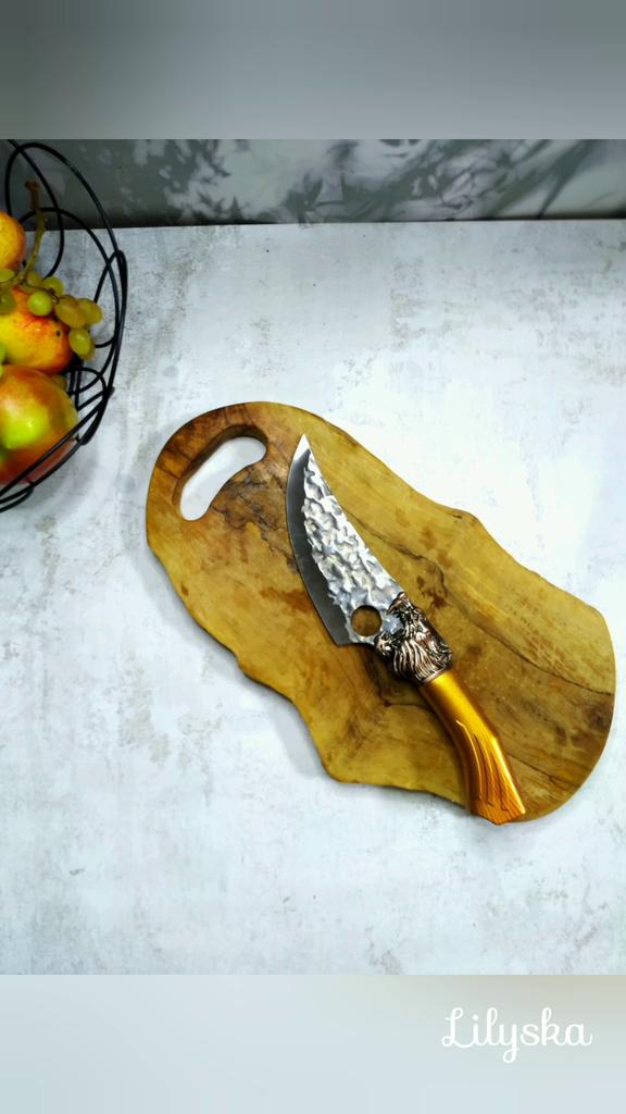 Un cuchillo precioso y muy util para usar en la cocina y fuera de casa en los picnics El metal de la hoja es resistente al óxido y la hoja es muy afilada, ideal para cortar carne, huesos, frutas y verduras. Navaja multiusos de alta calidad con mango de color completamente natural que encaja bien Debido a que el mango es largo y da un control completo al cortar objetos duros, me gustó y recomiendo comprarlo