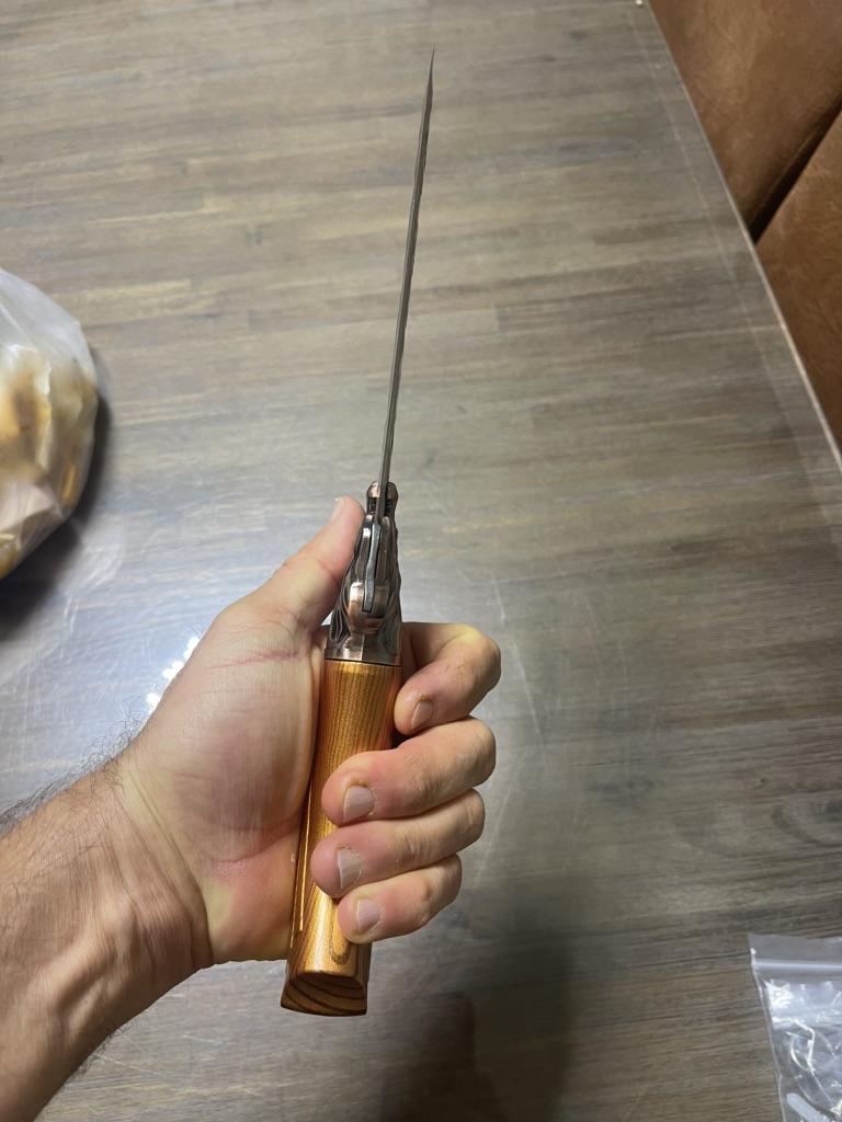 Elegí la primera opción. Esperaba que viniera con una funda... El cuchillo está afilado. No me gustó el mango: plástico, pintado con pintura barata. P.D.: ha pasado medio año y el cuchillo no se ha desprendido. Afilado, ni siquiera lo he afilado todavía. Ideal para cortar pizza, cecina y más👍 P.D.: ¡Ha pasado un año y el cuchillo está como nuevo! Lo afilé una vez