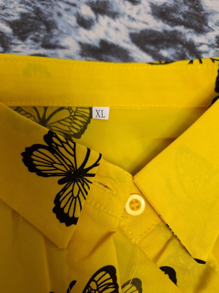 Blusa con estampado de mariposas para mujer, blusas de gasa con botones y cuello vuelto, Tops de manga larga de talla grande de Color sólido