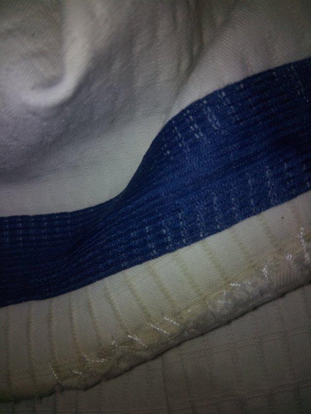 Le falta un poco menos de un metro y el corte está deshilachado. Desagradable.