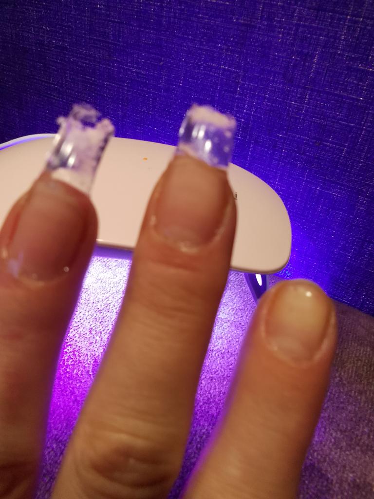 ¡Agrego! Si la haces fina se rompe, queda muy blanda, pero si le pones más gel se endurece por fuera, por dentro se queda blanda y al cabo de un pequeño golpe o al día se rompen solas, se despegan, incluso aunque se como trabajar y como aplicar correctamente, de todos modos se desprenden de la uña natural,,,,la lampara no seca el esmalte para nada, puedes quedarte 30 min ya que no hay resultado, ponte el top arriba y queda suave,,,,,la mayoría de las veces el gel se rompe al final de la uña natural, las hice para una boda y cuando le di la mano a la novia me quedé con 4 uñas 🤣 no ¡recomendar! Desperdicio de dinero