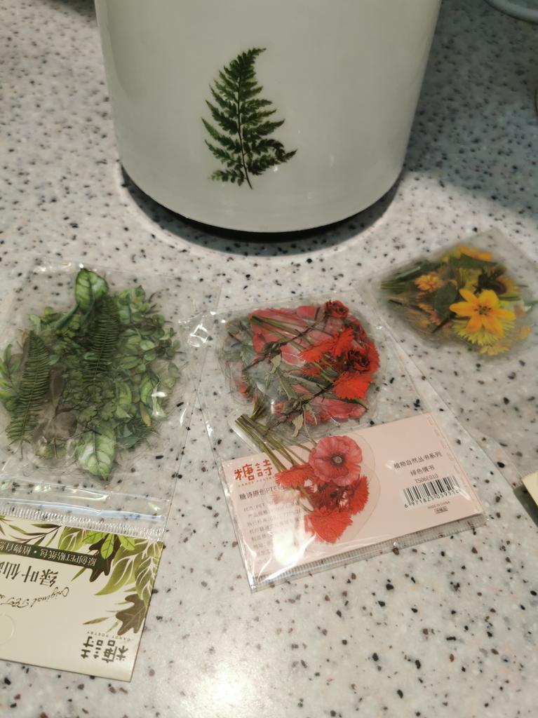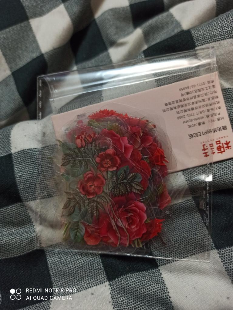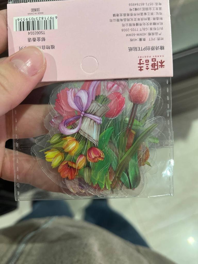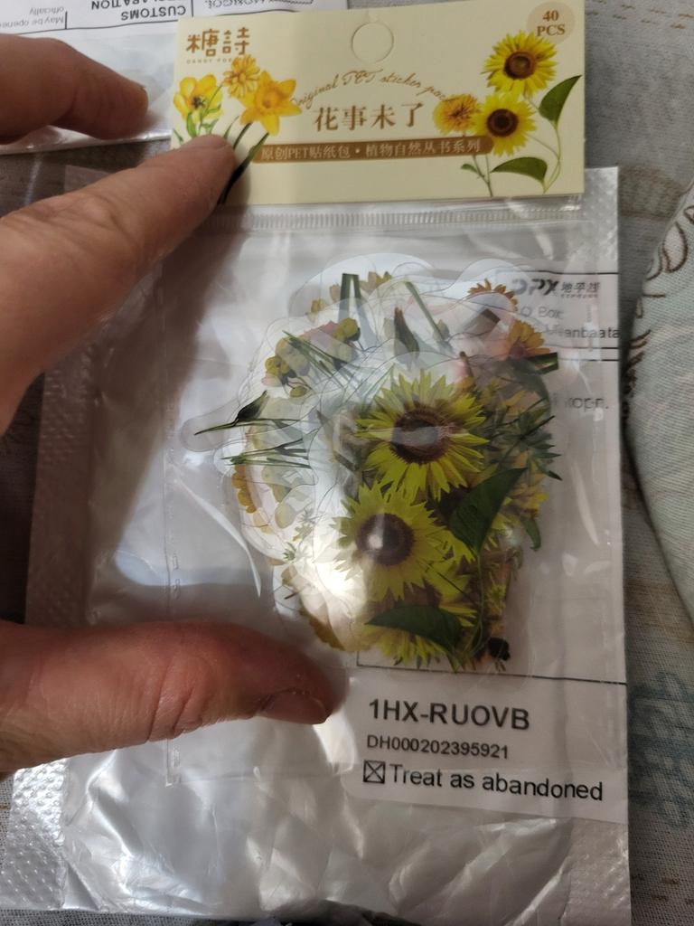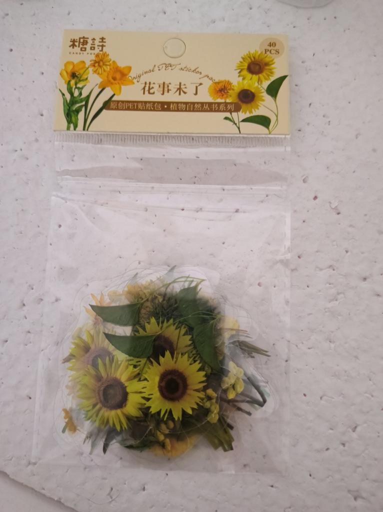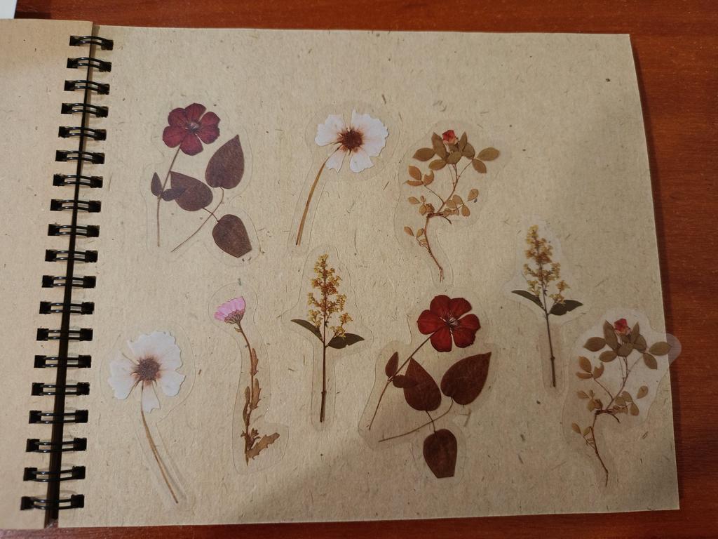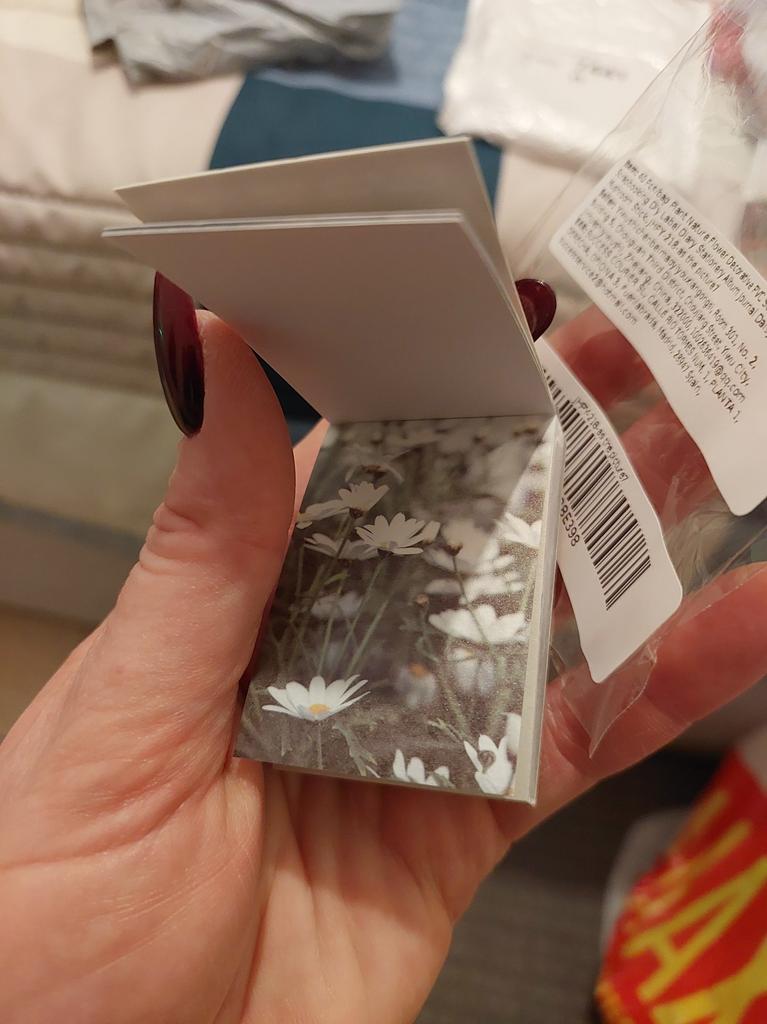 En lugar de pegatinas, llegó un minilibro de papel con flores.
