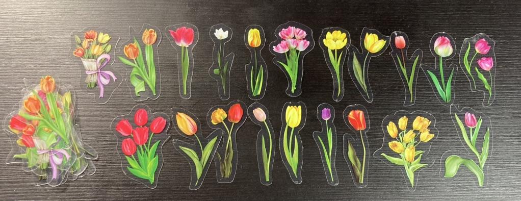 Un buen conjunto, todas las flores están sobre una base transparente, por lo que encajan perfectamente en cualquier fondo.
