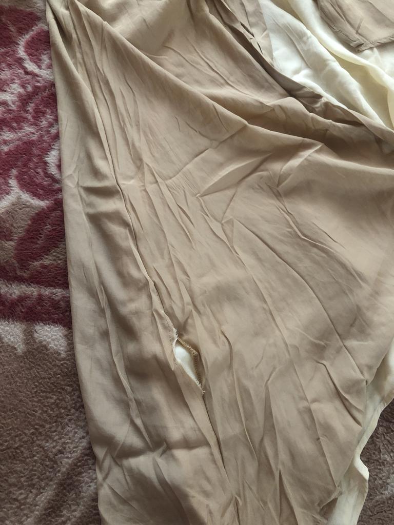 Muchos hilos deshilachados y la manga está rota o no cosida (((