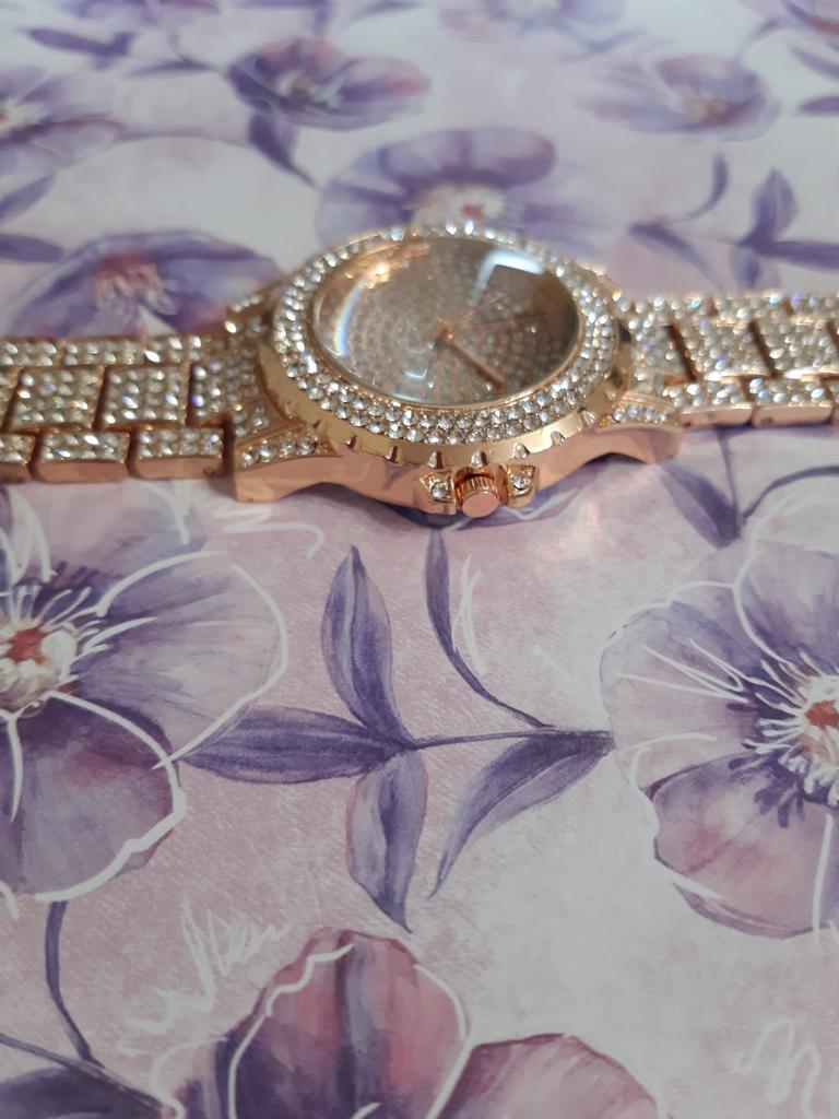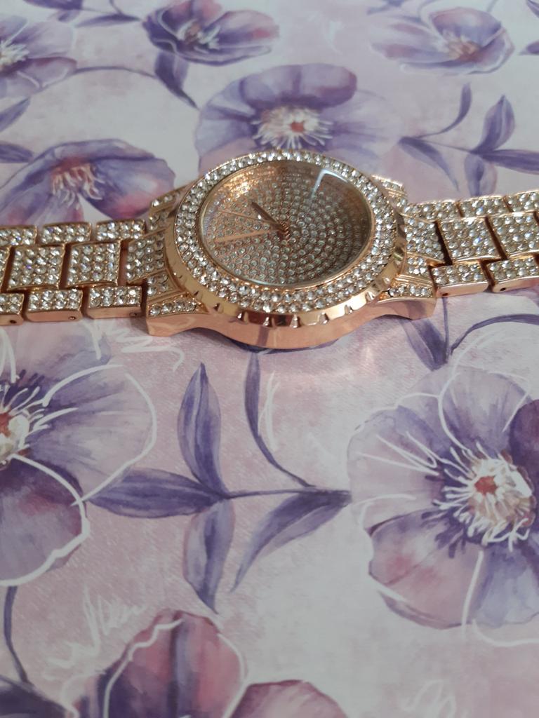 Reloj brillante con un precio muy económico, si quieres lucirte sin gastar mucho, este es tu reloj. El reloj que compré tiene un acabado plateado, muchos diamantes pequeños en el brazalete y en el interior del reloj. La tienda tiene una selección de pocos colores. para elegir.Muy bonito, así que espero que no se oscurezca rápidamente.Entrega en 20 días a Irlanda.¡Felices compras!
