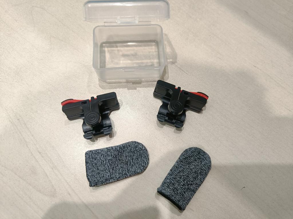 Los guantes para el pulgar y los gatillos vienen en una caja de plástico tan pequeña que hace que sea fácil llevarlos contigo dondequiera que vayas. Y hace que sea más difícil perder piezas. Los guantes pequeños cumplen a la perfección su cometido y tienen un ajuste cómodo. Sin embargo, con las partes del gatillo, se da el caso de que, por un lado, casi no encajan en ciertos casos, lo que podría soportarse. Lo que me parece una lástima es que ni siquiera están pegados a mi estuche, en el que realmente tengo que forzarlos, pero aún se pueden mover hacia los lados. También estaría bien si no fuera por la funcionalidad... A veces, la pantalla táctil no hace contacto y el botón (para mí en CoD) no responde. Pero en general, en realidad es algo bastante divertido. Volvería a pedir las cosas del pulgar, pero para las teclas compraré algunas con tornillos de fijación para comparar y ver si eso es mejor.