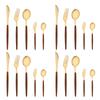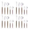 Juego de cubiertos de acero inoxidable con mango con efecto de madera, aspecto elegante que combinará bien con su vajilla existente.. Este juego de cubiertos plateados es una opción perfecta para bodas, Acción de Gracias, inauguración de la casa, campamentos, fiestas de cumpleaños y cenas.. La artesanía exquisita y la apariencia elegante lo convierten en una excelente opción de regalo.