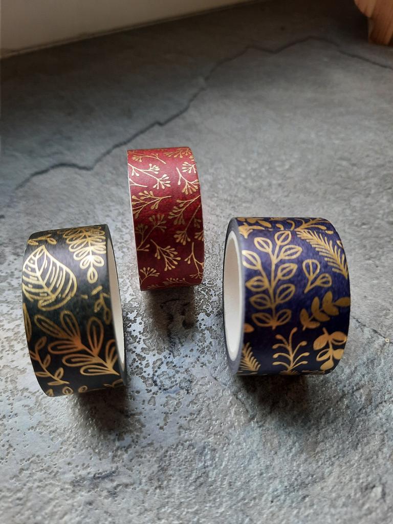 Juego de cintas Washi de lámina dorada, 3 uds., 15mm, 20mm, patrón de flores y estrellas, cinta adhesiva, pegatinas decorativas para diario