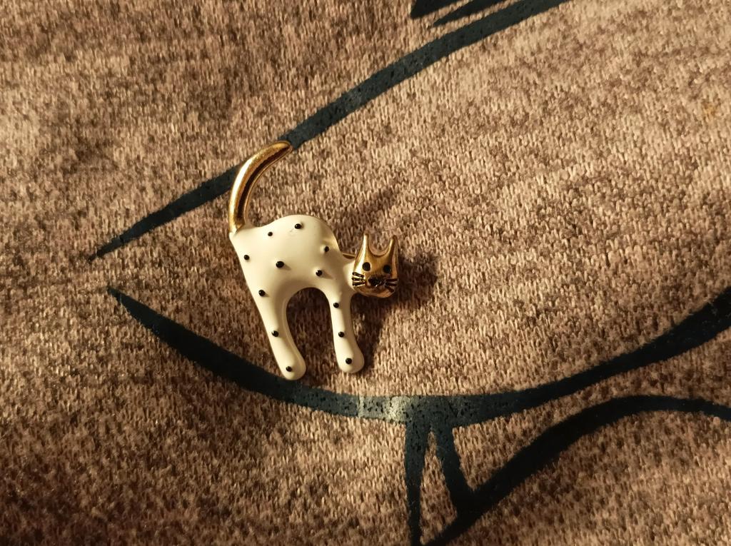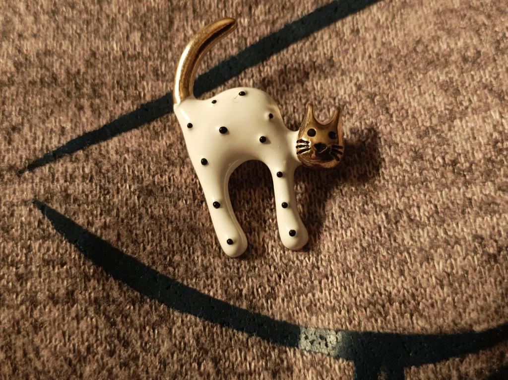 Un gato y una dama caminan por el callejón - Todo un parque solo. Ella guarda silencio hacia él con ternura. Y él no le maúlla. (autor Nadiya GUMENYUK) Hola a todos, miren qué maravilloso broche encontré en JOOM y me enamoré de inmediato 😍 Y cuando llegó, me enamoré aún más: está bien hecho, es pequeño, se ve hermoso y muy lindo 😍 tamaño 4x2,5 cm El vendedor también tiene el mismo broche blanco.. Llegó en una bolsa a Ucrania en 33 días.