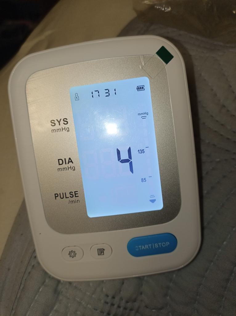 Paso 2: Presione el botón "Start/Stop", la máquina se reiniciará automáticamente a cero, el brazo comenzará a inflarse automáticamente, la bomba comenzará a inflar el manguito y el cambio de presión en el manguito se mostrará en la pantalla.. El esfigmomanómetro también detecta el pulso durante el inflado, así que no mueva el brazo y manténgase quieto durante toda la medición.