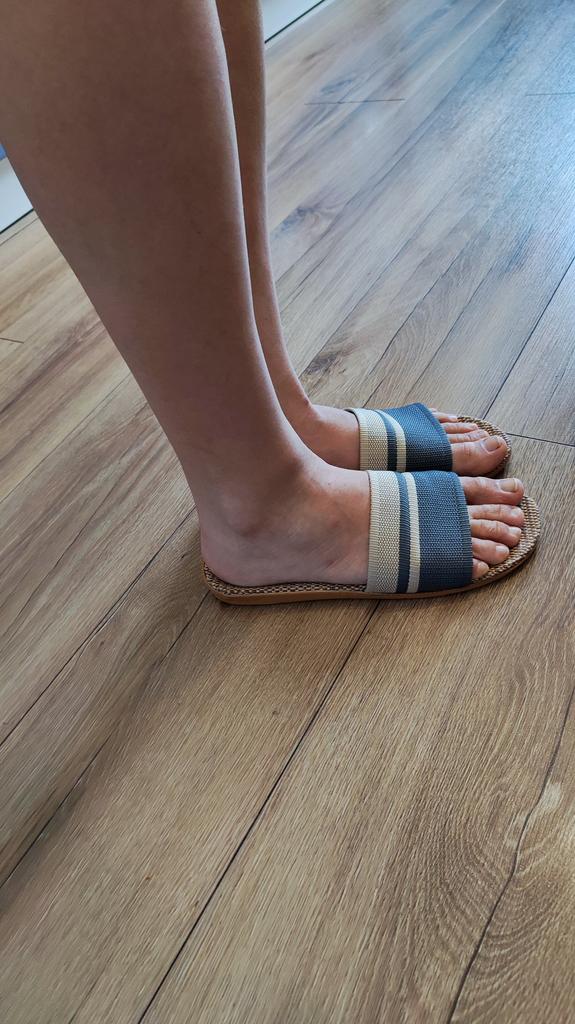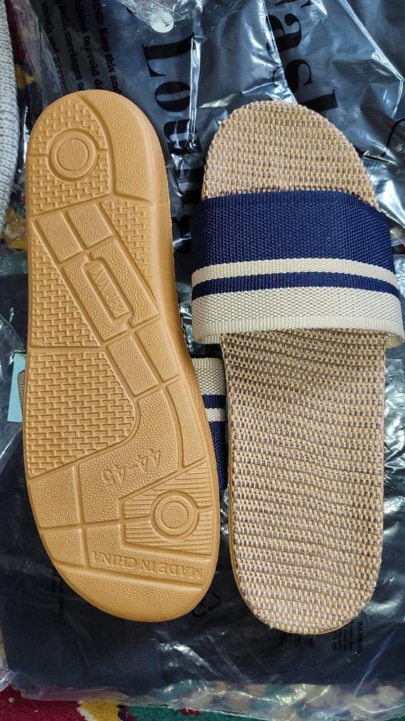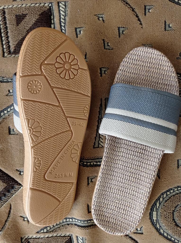 Mules de verano para interior con suela sintética tejida. 👍🏵️ Coge la talla más grande de la que pides habitualmente. 💞💝 El 44/45 es adecuado para una talla 43 francesa, para pies estrechos. 😜🥹 La calidad es muy buena y los acabados están perfectamente hechos. 💐💜