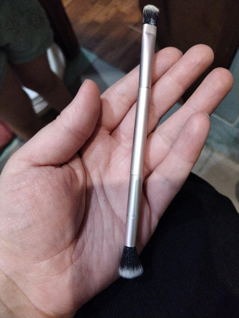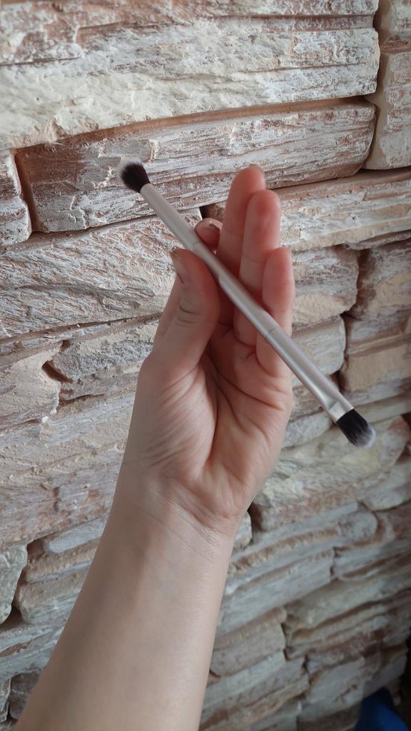 El cepillo es sintético, suave, agradable. La pila no sobresale ni se sale. Las sombras se aplican y se mezclan bien.