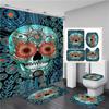 Cortina de ducha con forma de calavera y esqueleto, impermeable, decoración de baño con ganchos, mampara de baño, mampara de bañera, tapa de inodoro, juego de alfombrillas de baño