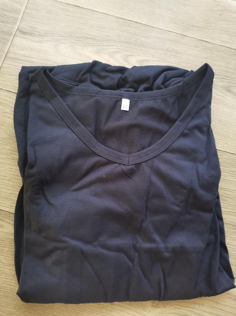 Buen vestido de punto, la talla M me quedó bien para mi 46-48, tiene bolsillos, pero no son profundos. Lamento haber cogido el oscuro. Pediré también el claro.