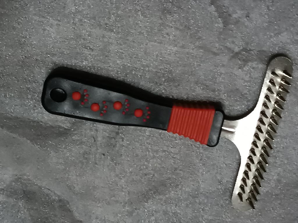 Excelente cepillo para perros de pelo largo, mi pelirrojo está contento.