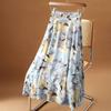 Qooth Falda acampanada Floral de longitud media de gasa para mujer de verano Falda larga elegante de cintura alta QT1835