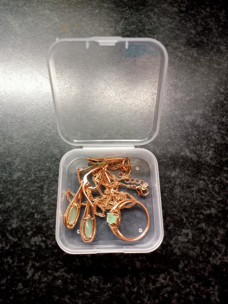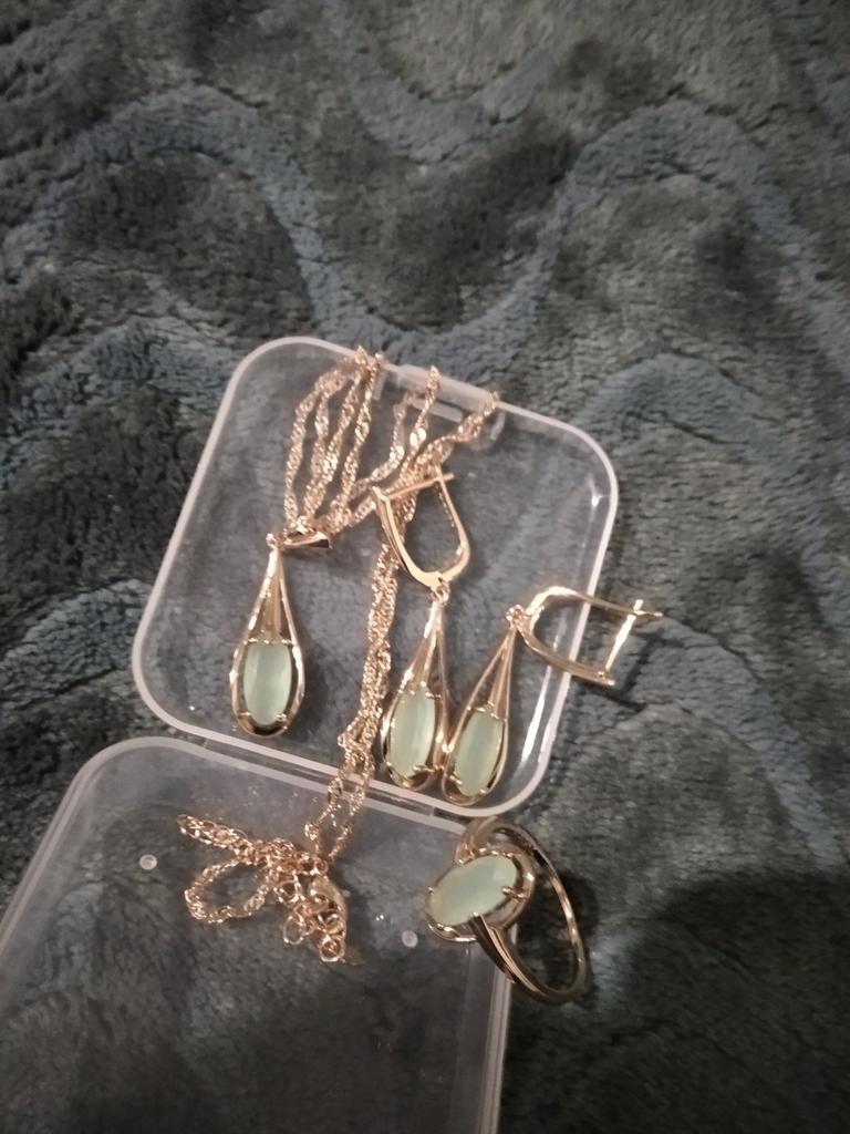 Tomé el anillo como un conjunto con aretes, resultó, en mi opinión, hermoso. El anillo es delicado, se ve delicado y elegante en la mano. Al menos para mi gusto. A primera vista, es difícil distinguirlo de las joyas caras. Los productos fueron entregados en aproximadamente un mes. recomiendo