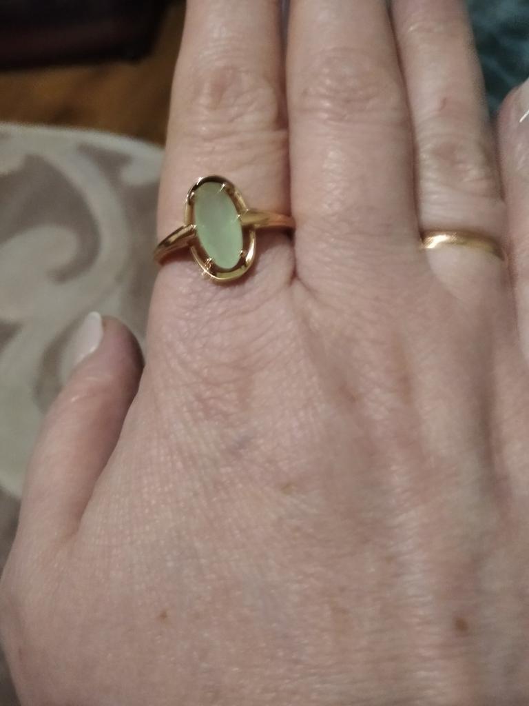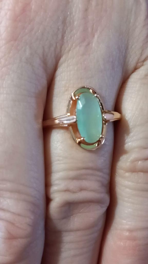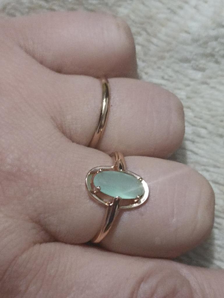 El anillo es igual que en la imagen. Pero no es metal, parece plástico. La piedra es hermosa, similar al ópalo verde suave.