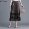 Falda plisada de encaje de malla a media pierna para mujer de primavera y verano, falda femenina de cintura alta, Falda plisada de corte a de longitud media ajustada sólida