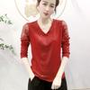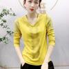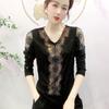 Camisetas de gasa con cuello en V para mujer, Tops de Color liso con diamantes empalmados, Jersey informal fino de manga larga para ir al trabajo, ropa de alta moda