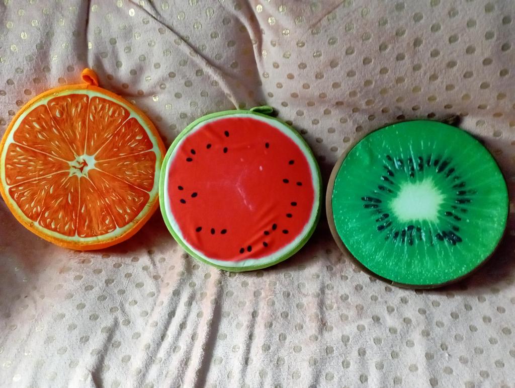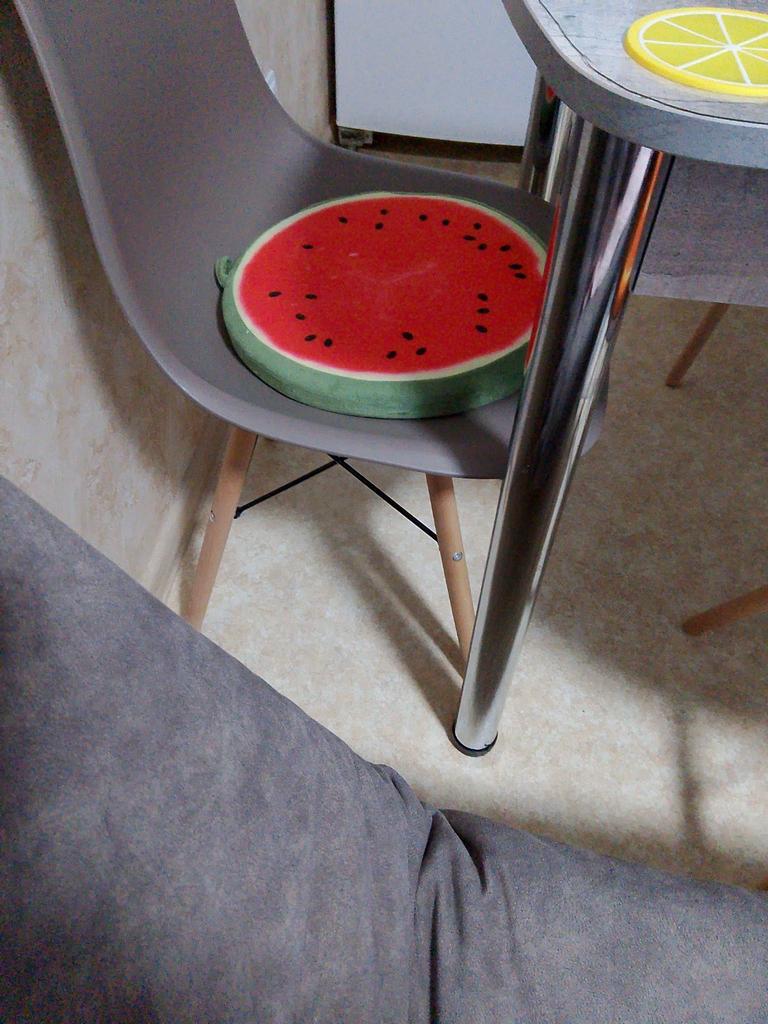 Muy buenas almohadas! Diámetro 33 cm, grosor 4 cm. Cremallera oculta insertada. El interior está hecho de goma espuma sólida. Las fundas son lavables. Éstas no son las primeras almohadas para mí. Compré uno de gran diámetro en China. Y yo estaba feliz con estos pequeños cojines de silla. ¡Lo recomiendo!