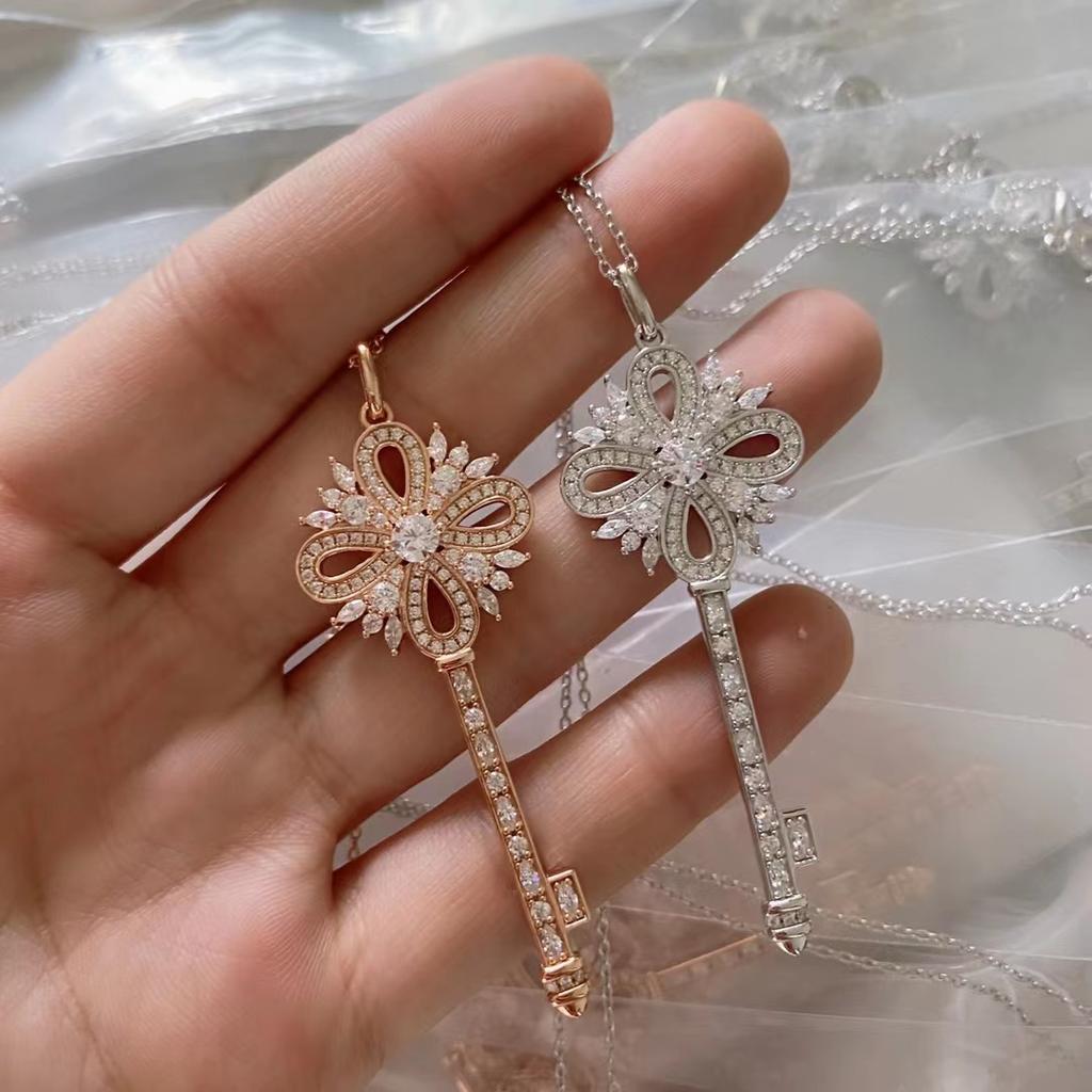 Alta joyería europea, colgante de llave de copo de nieve de diamante completo de Plata de Ley 925, collar de mujer, regalo de Navidad de moda