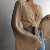 Blusas ropa de verano camisas para mujer Y2k Top corto plisado camisa de mujer ropa femenina Tops cuello en V camisa de manga acampanada