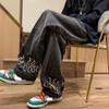 Moda masculina Ropa Y2K Vaqueros de lujo vintage Hombres Bordado de fuego Pantalones rectos holgados de alta calidad Pantalones vaqueros para hombres Ropa de calle