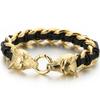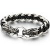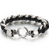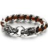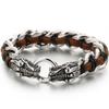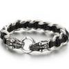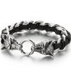 Pulsera Punk de Cuero Trenzado Lobo para Hombre Pulseras con Encanto de Mano para Hombre con Forma de Cabezas de Cráneo de Dragón Joyería de Acero Inoxidable de Lujo Gótico