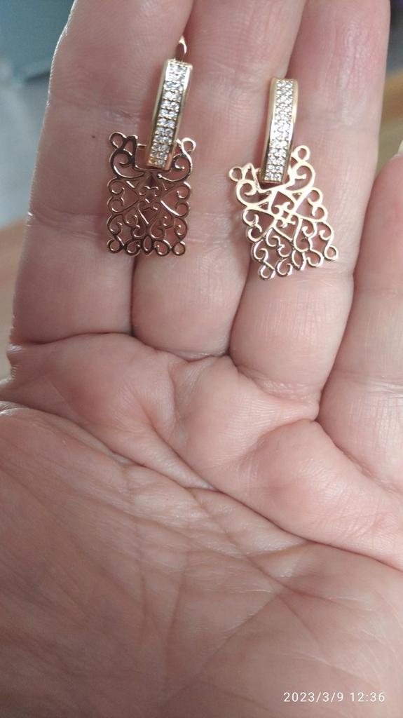 Pedido el 21,08, recibido el 13,09. Los pendientes los llevé con un anillo del mismo estampado. Me gustaron, el cierre es "inglés", fuerte, el color del metal es indistinguible del dorado. Si desea tener joyas de oro de alta calidad, estos productos son justo lo que necesita. Gracias al fabricante y al vendedor..