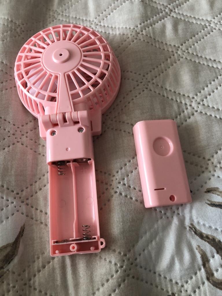 Mini ventilador que funciona a pilas, se pliega y se puede llevar de viaje.