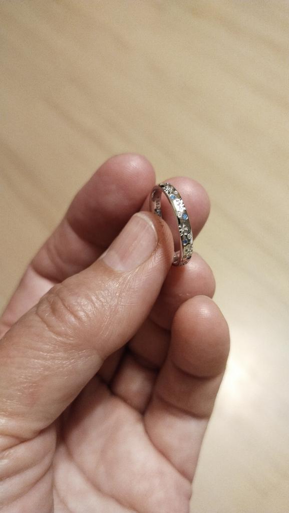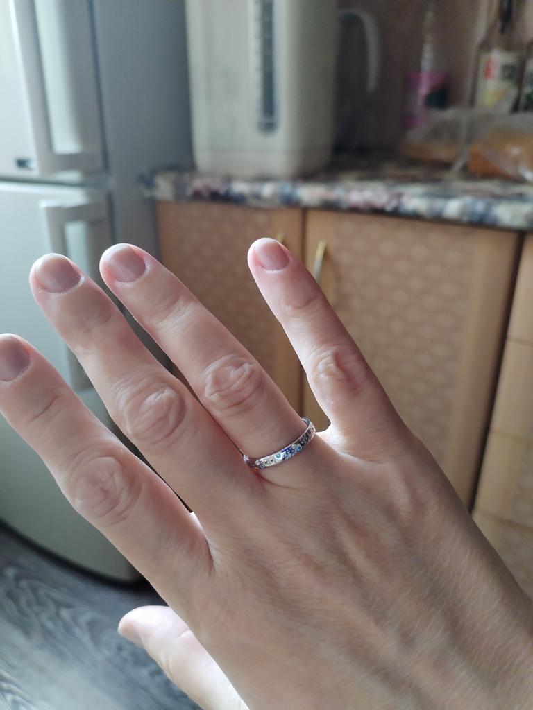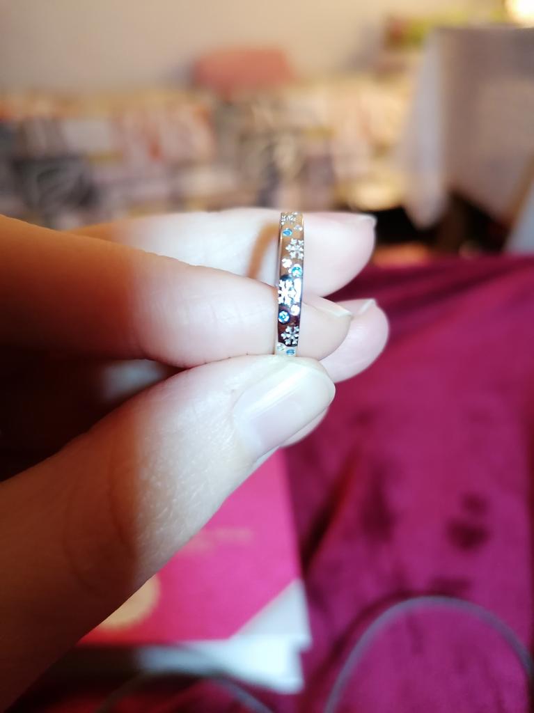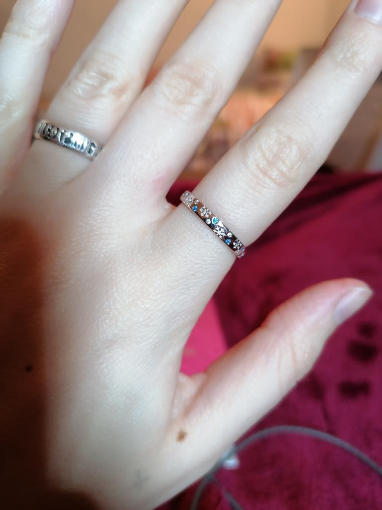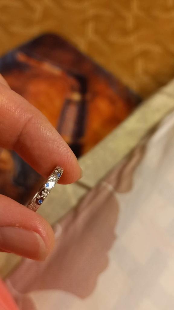 Un anillo muy bonito y delicado. De grosor cómodo, las piedrecitas están bien engastadas. Elegante. Gracias. Lo recomiendo.